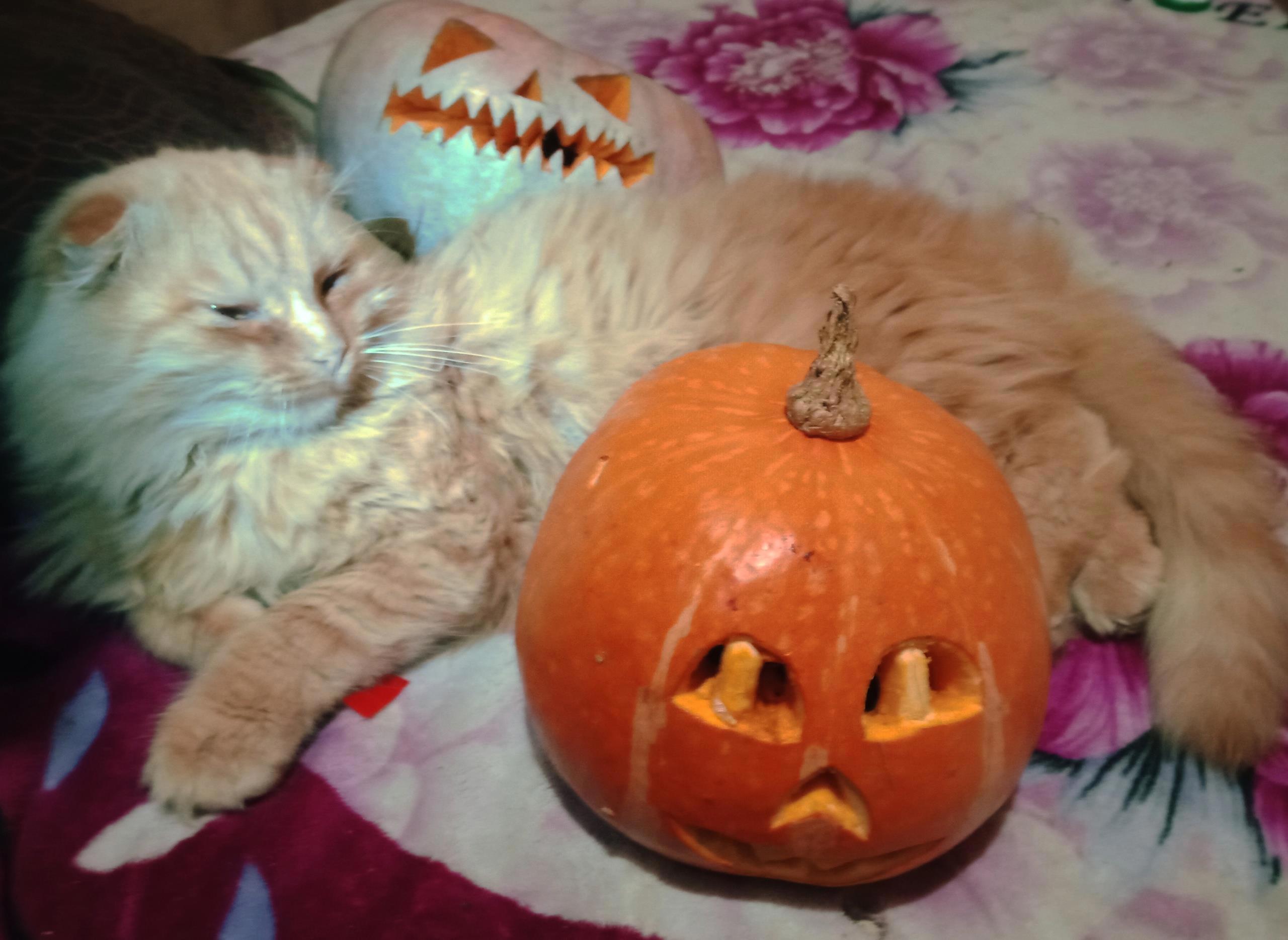 А ещё вот этот котик, как оказалось, очень любит тыкву. Он её даже жраль.