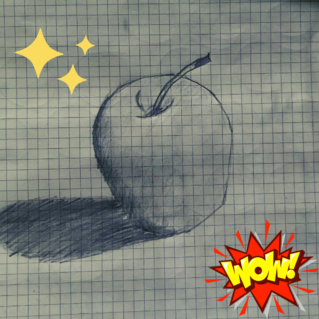 Сегодня с первой же попытки намалевал вот такое убогое яблочко (графические эффекты не моих рук дело и честно слямжены у canva):