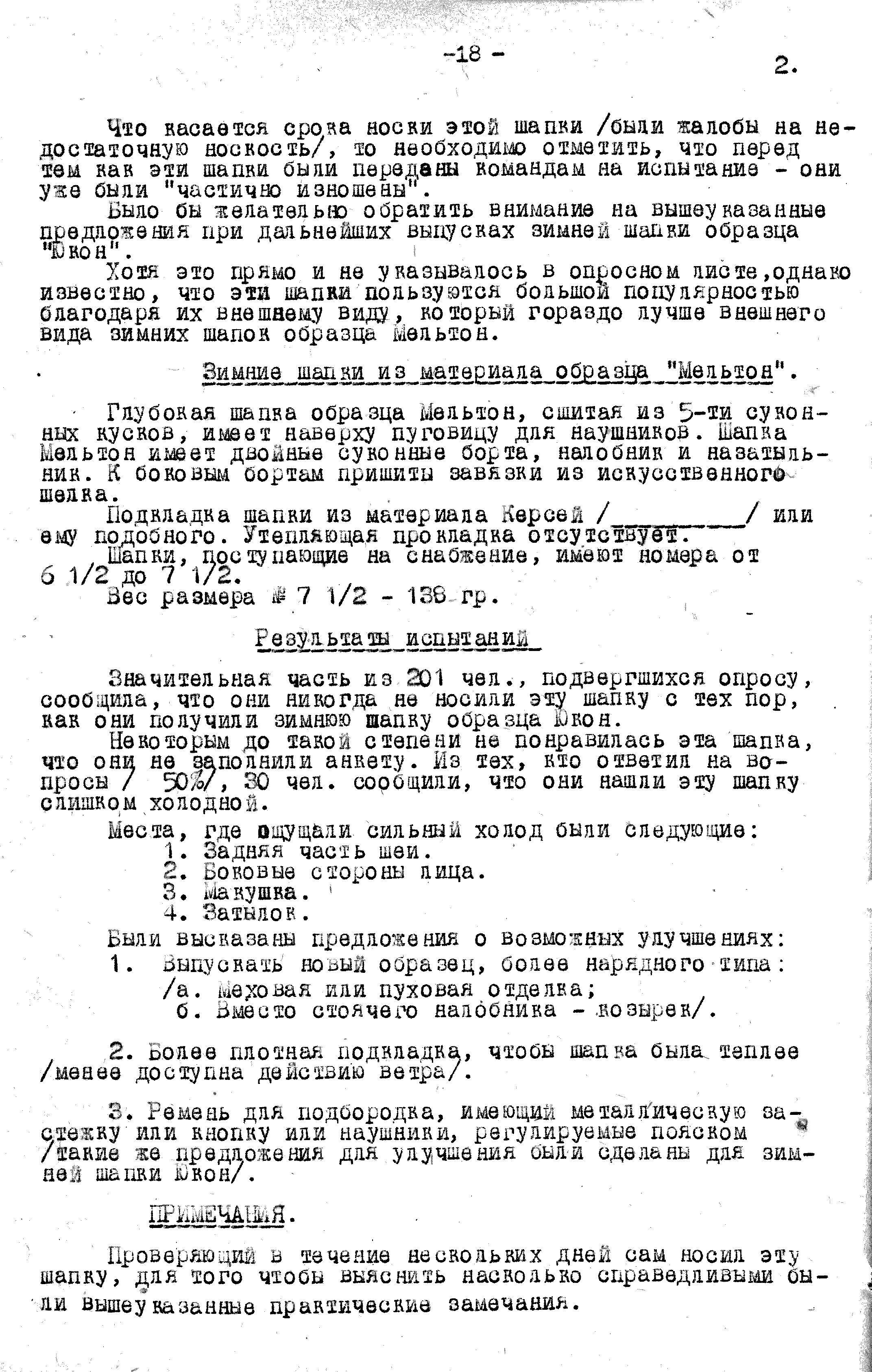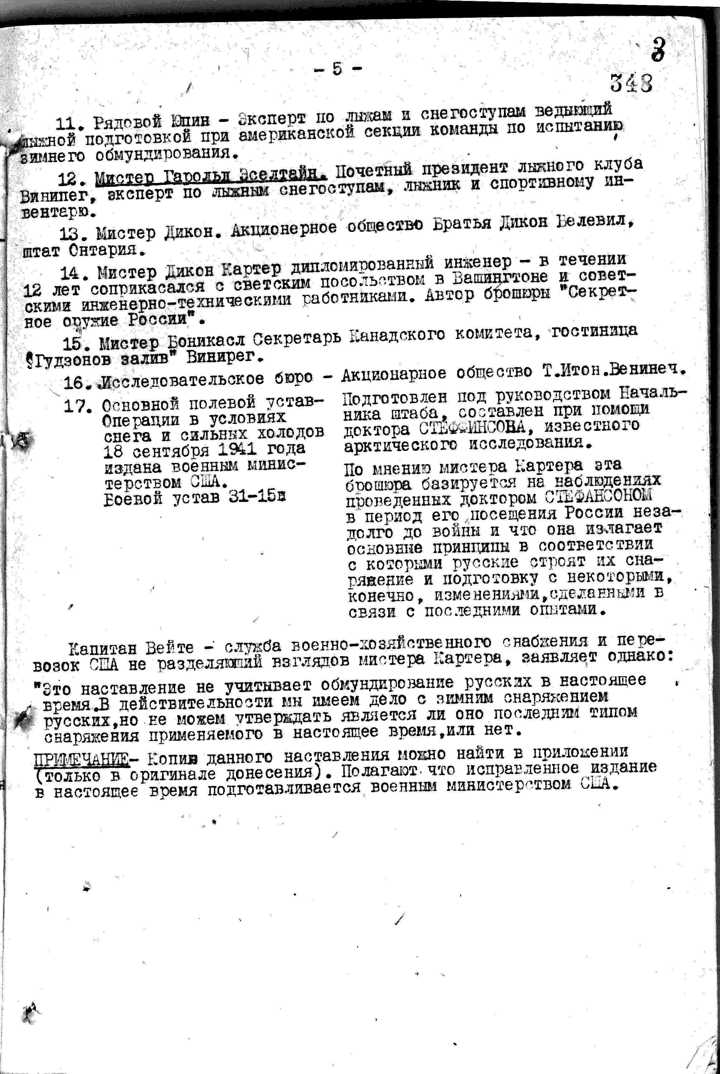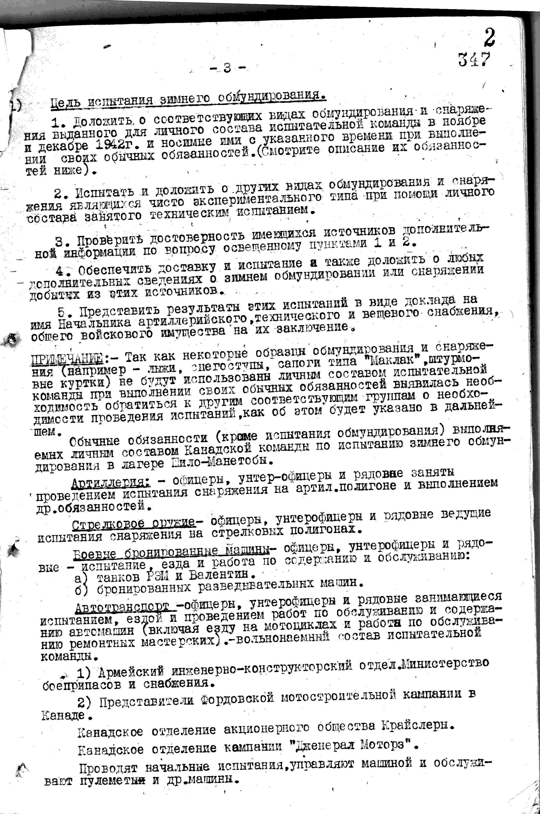 В 1944 г., в Главное Интендантское Управление, официальным путём, поступил "Доклад об испытании зимнего обмундирования Канадской Армии". Документ был отлично, по тем временам, проиллюстрирован фотографиями и рисунками. Скорее всего, это был своеобразный рекламный ход, призванный убедить Советское Правительство, расширить ассортимент закупаемой продукции.