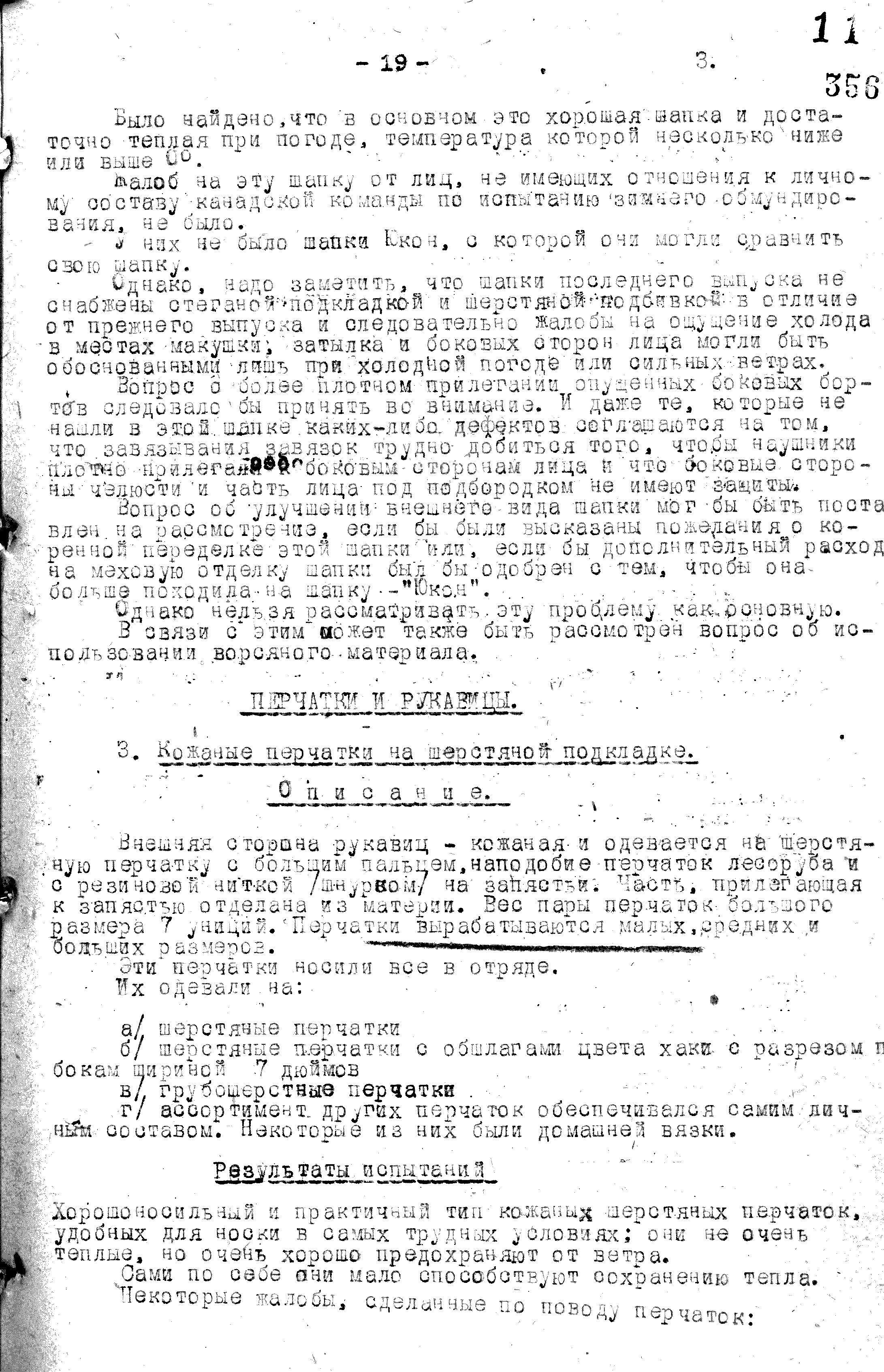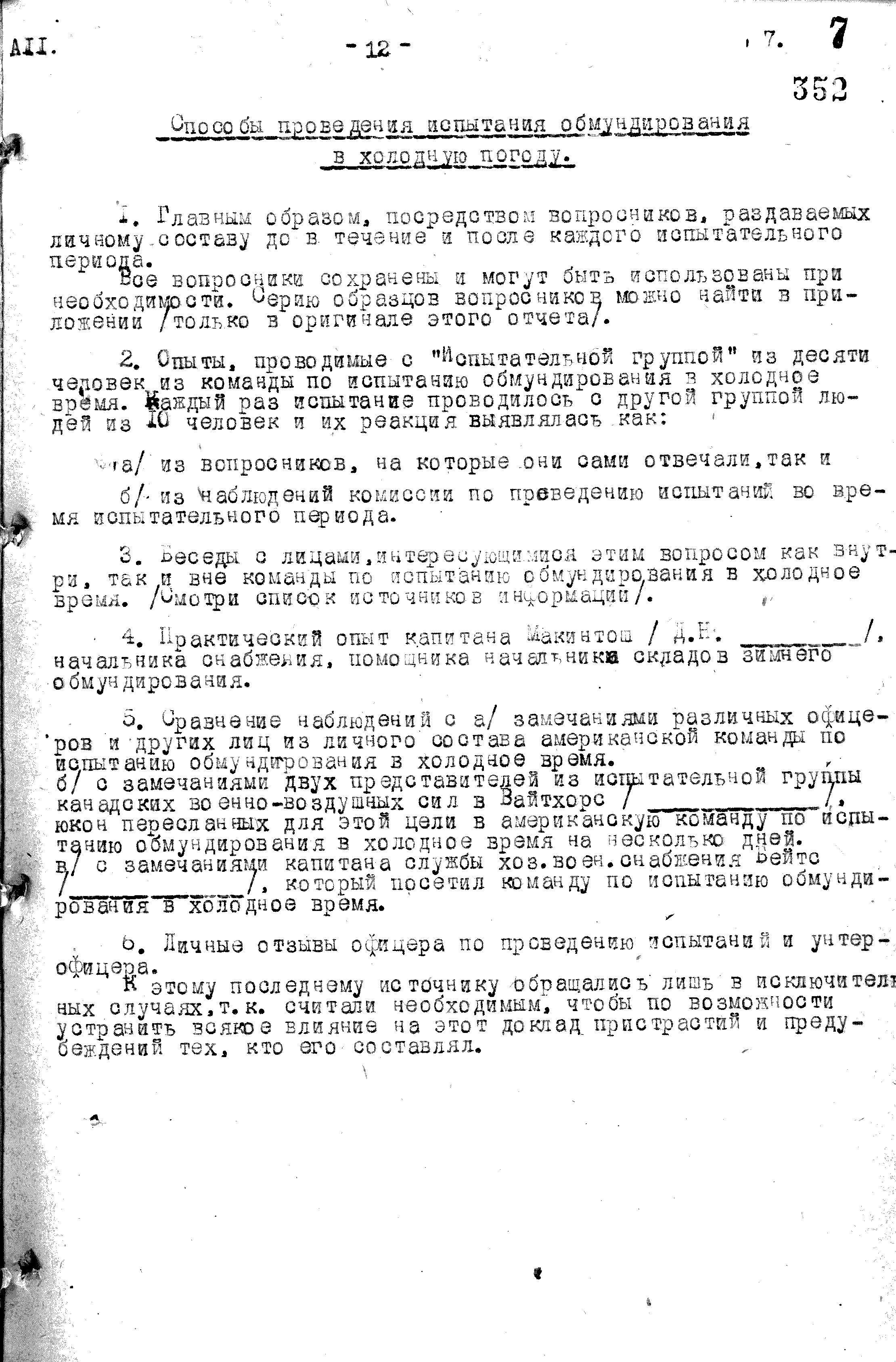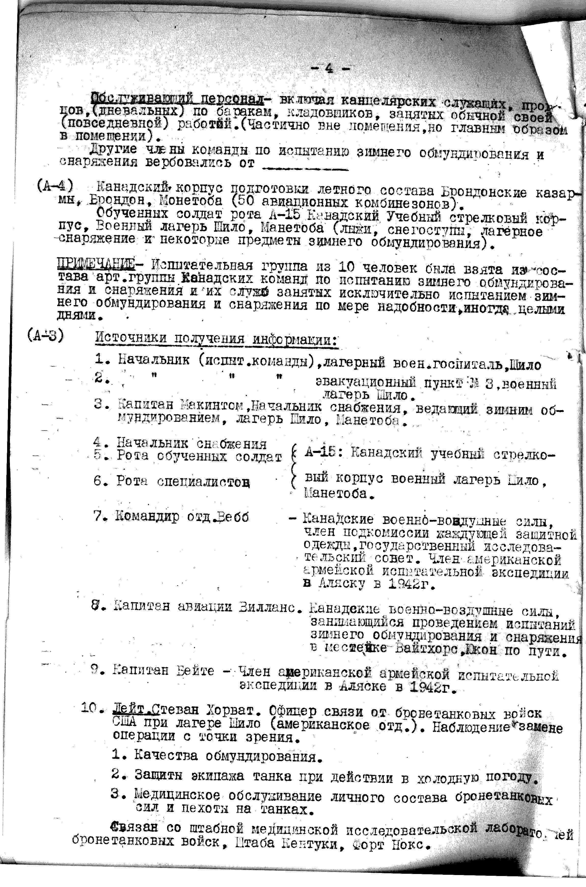 О испытании зимнего обмундирования Канадской Армии (фрагмент доклада). 1944 г.