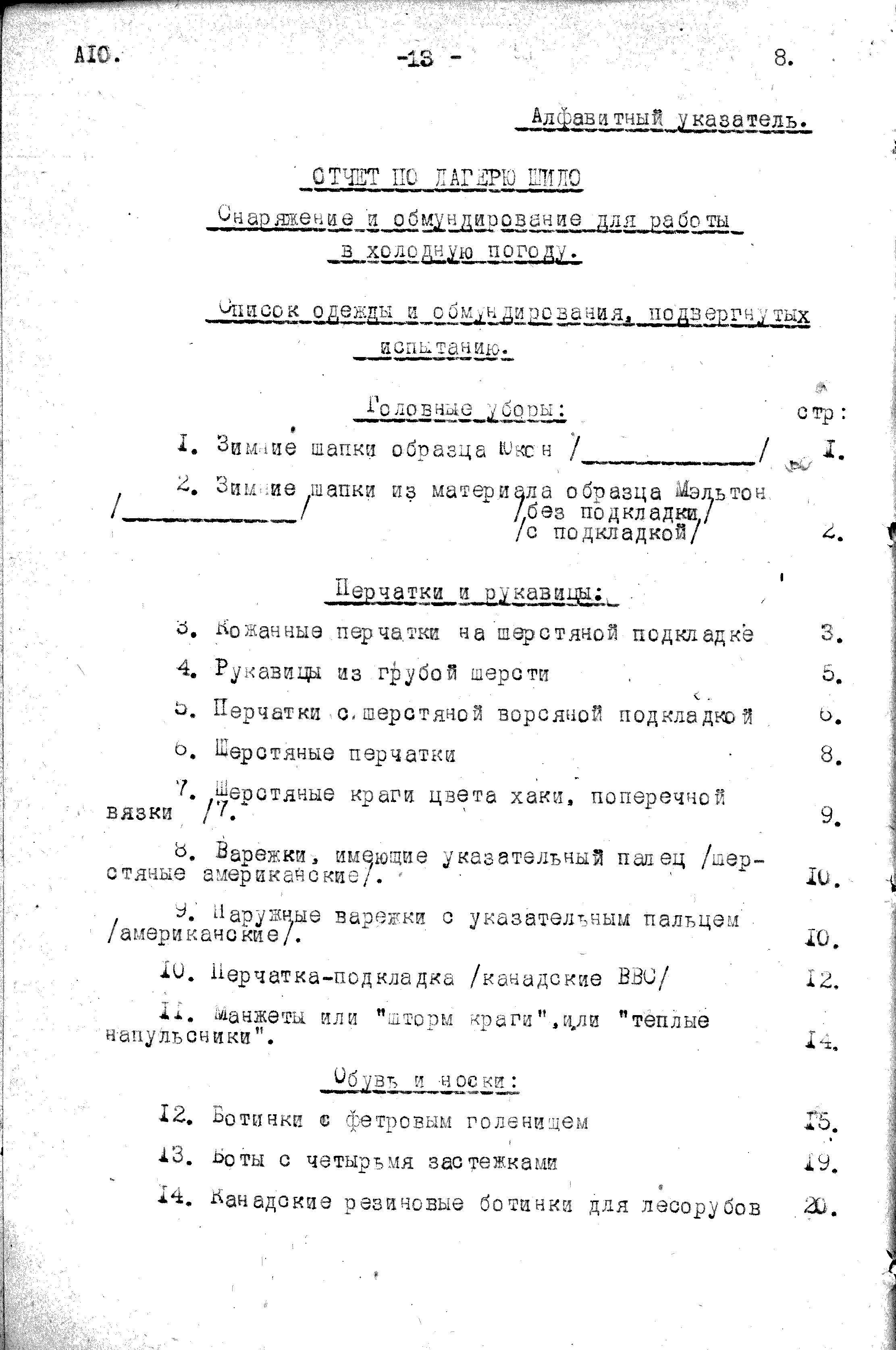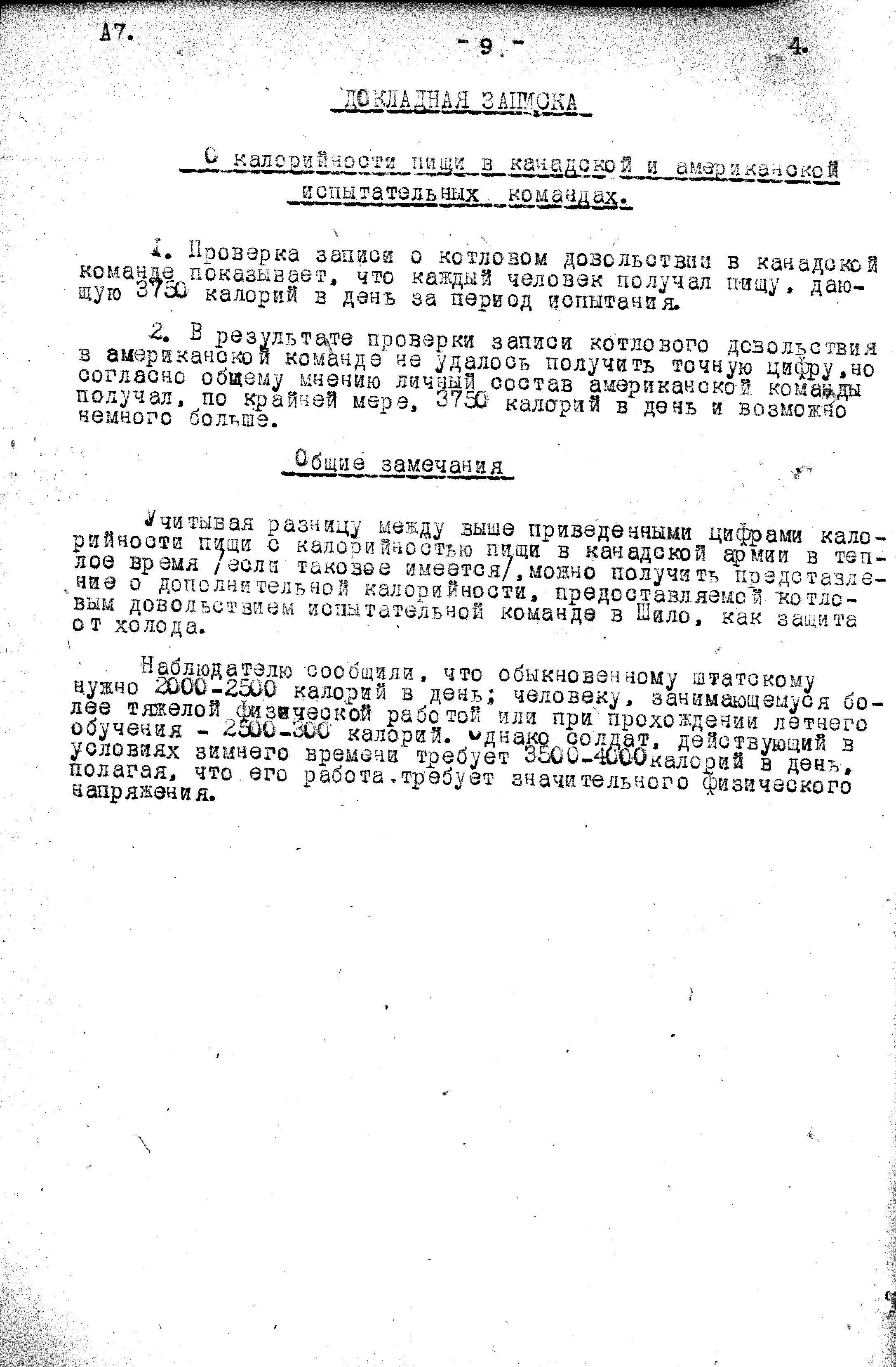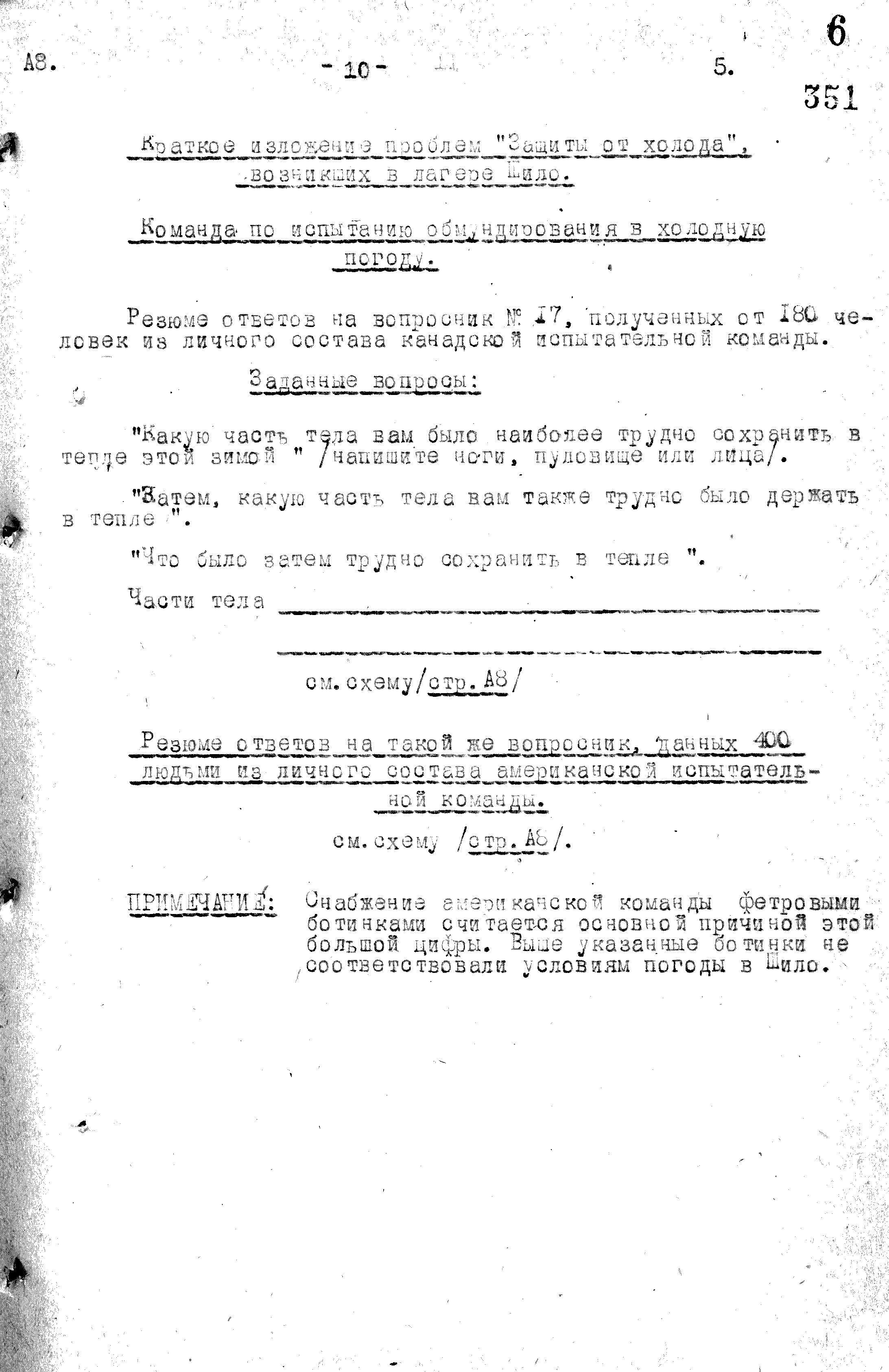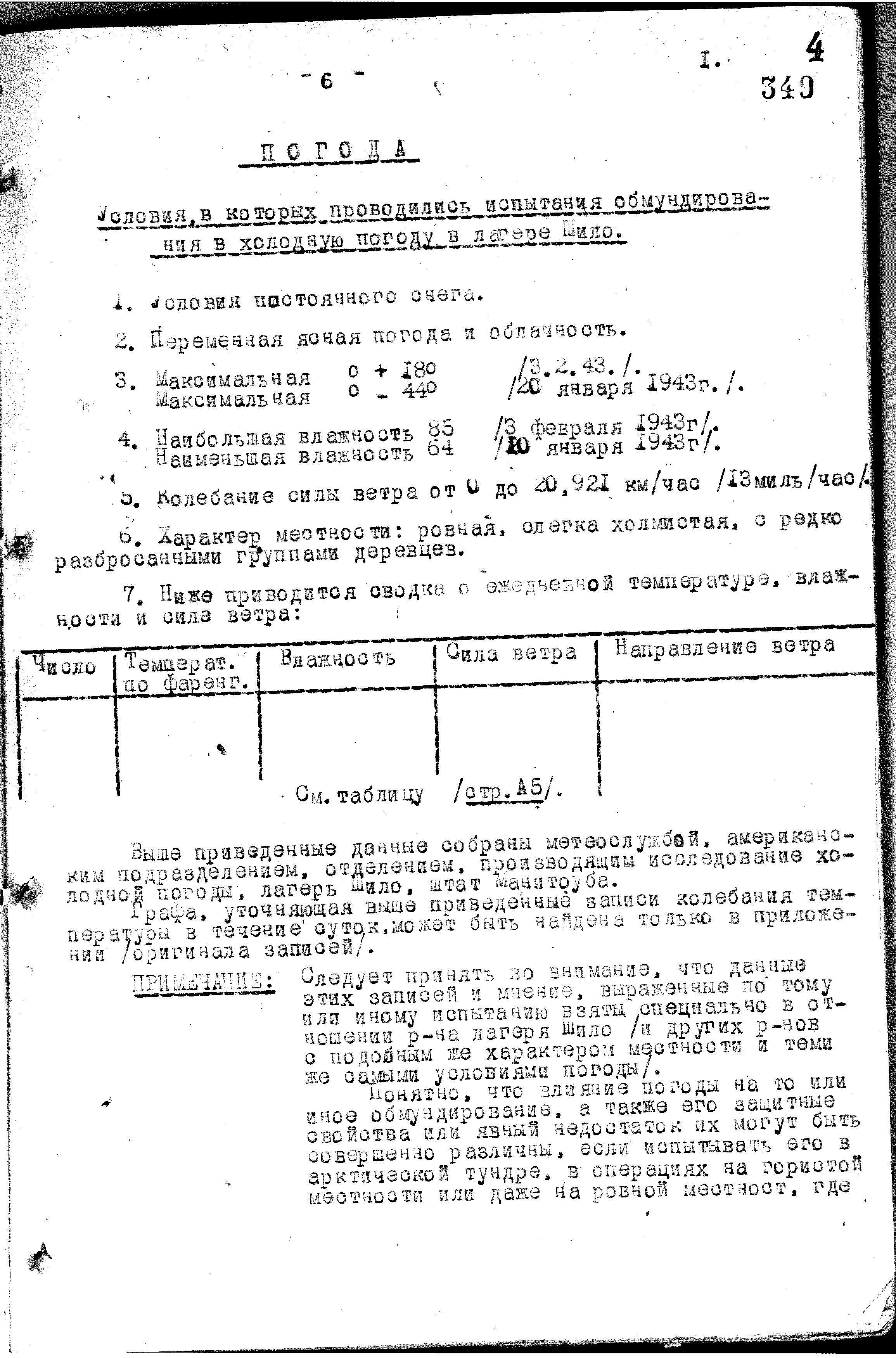 О испытании зимнего обмундирования Канадской Армии (фрагмент доклада). 1944 г.