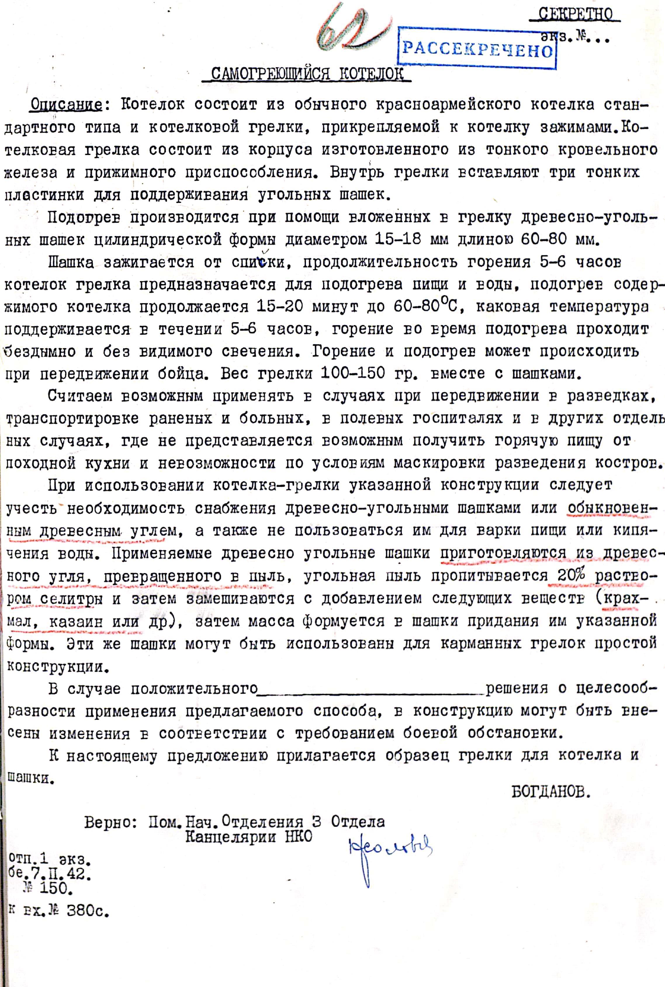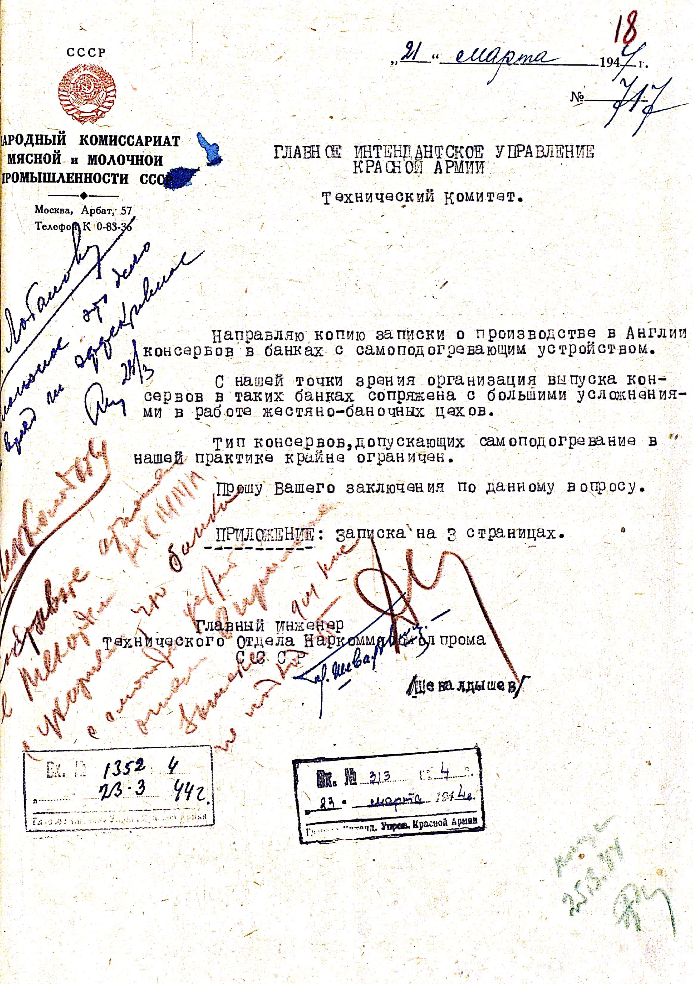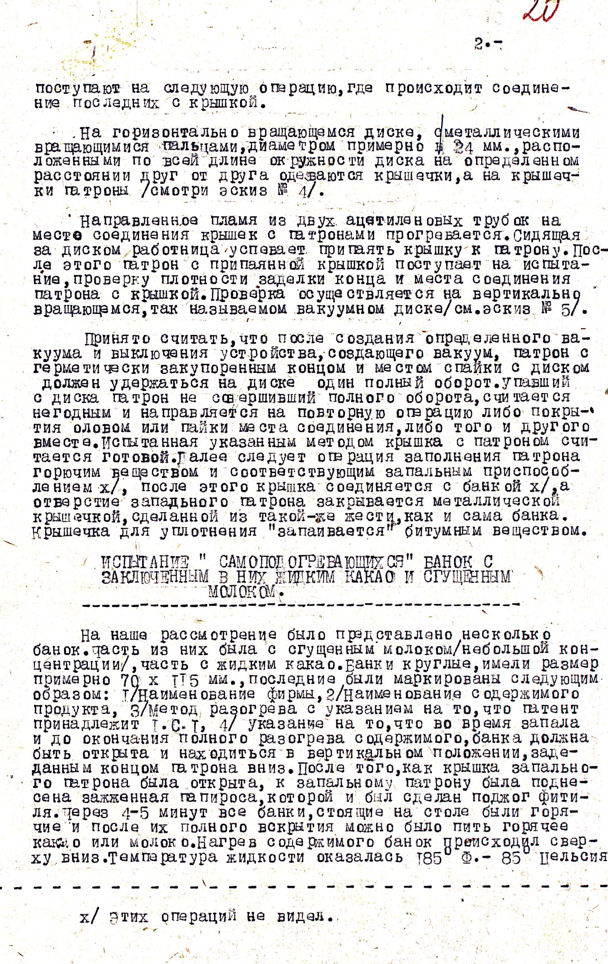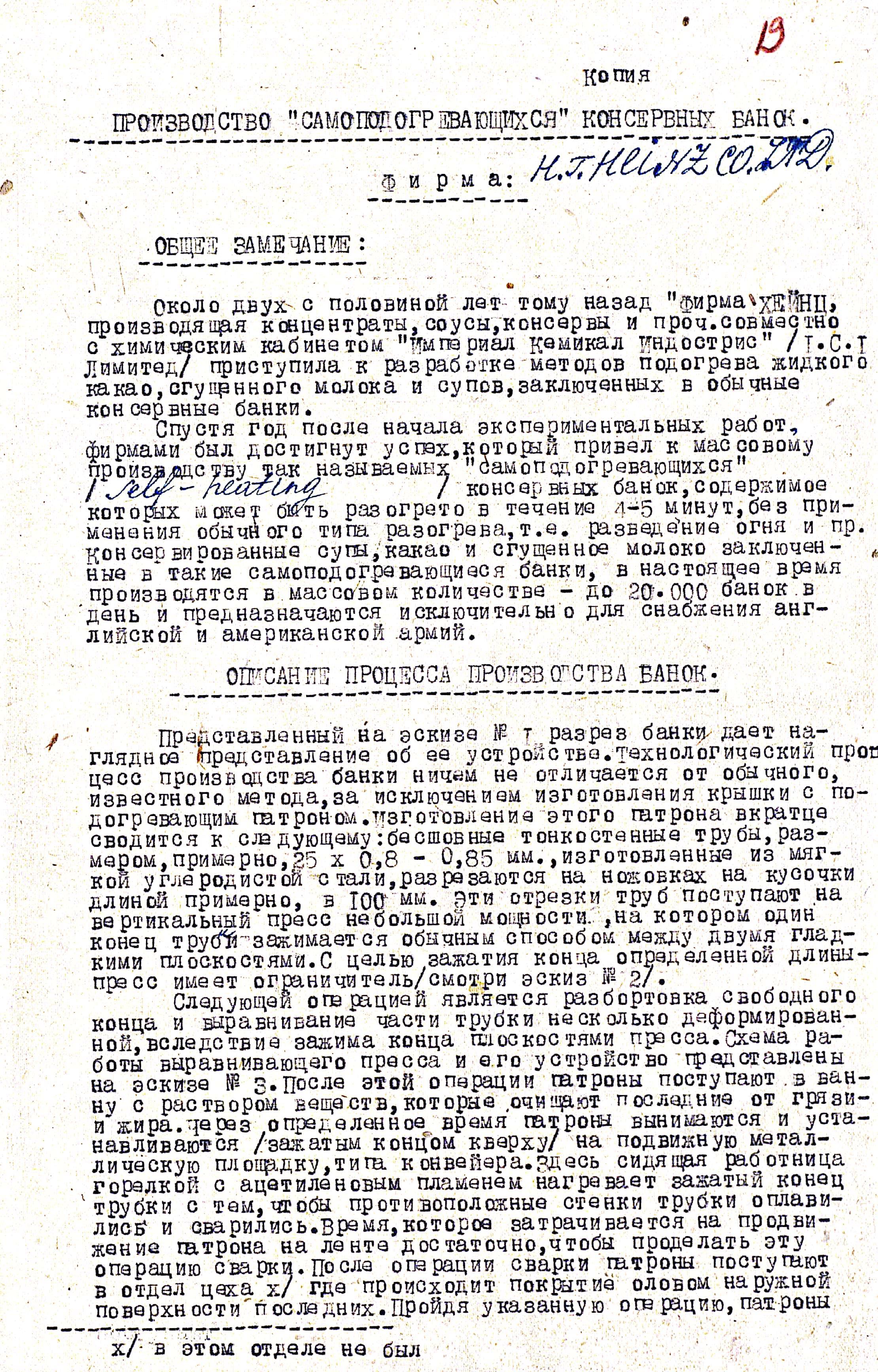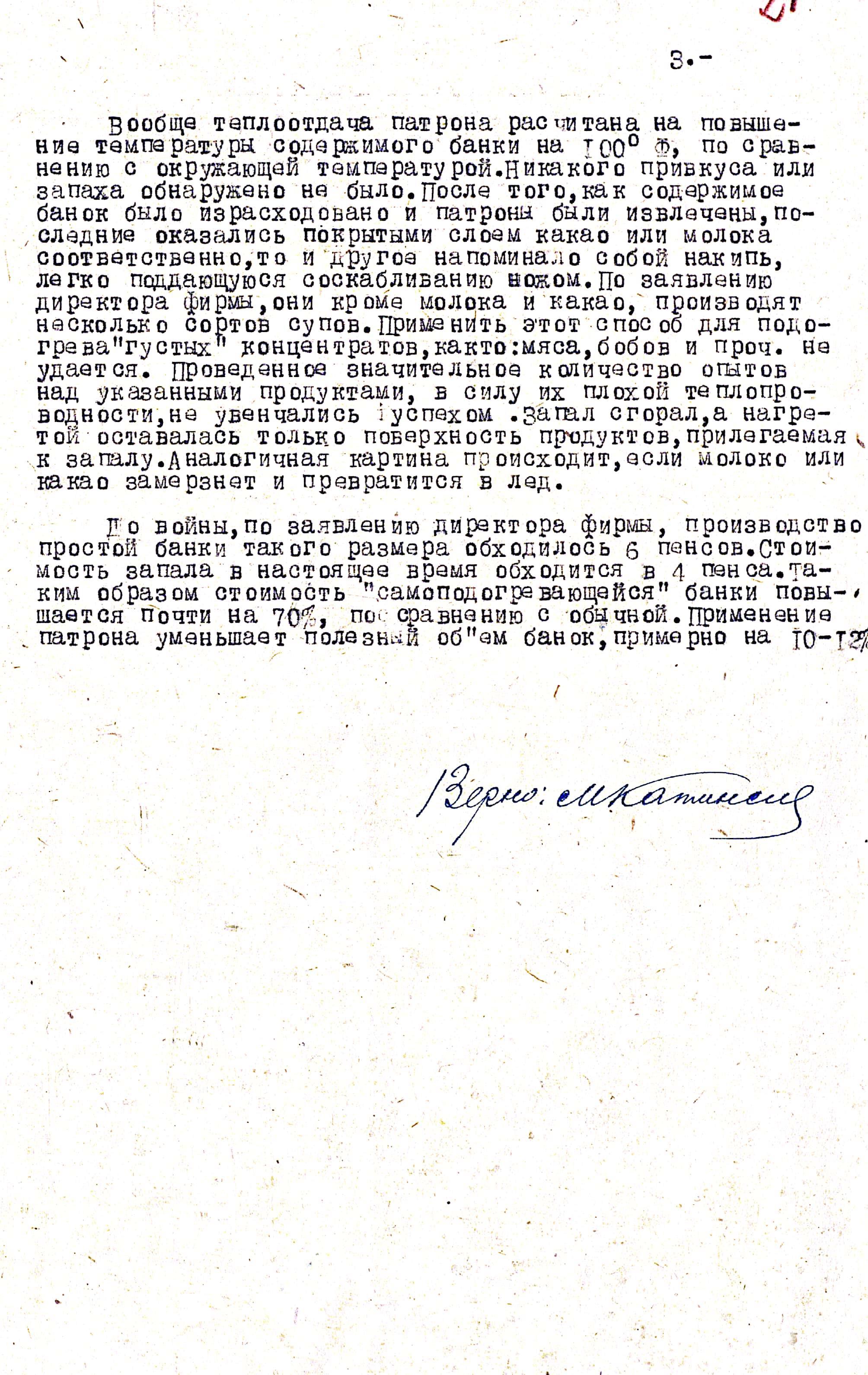 Как бы то ни было, и кто бы ни был автором этой идеи, но сохранилась записка Наркомата мясной и молочной промышленности, о производстве в Англии консервов с самоподогревающим устройством: