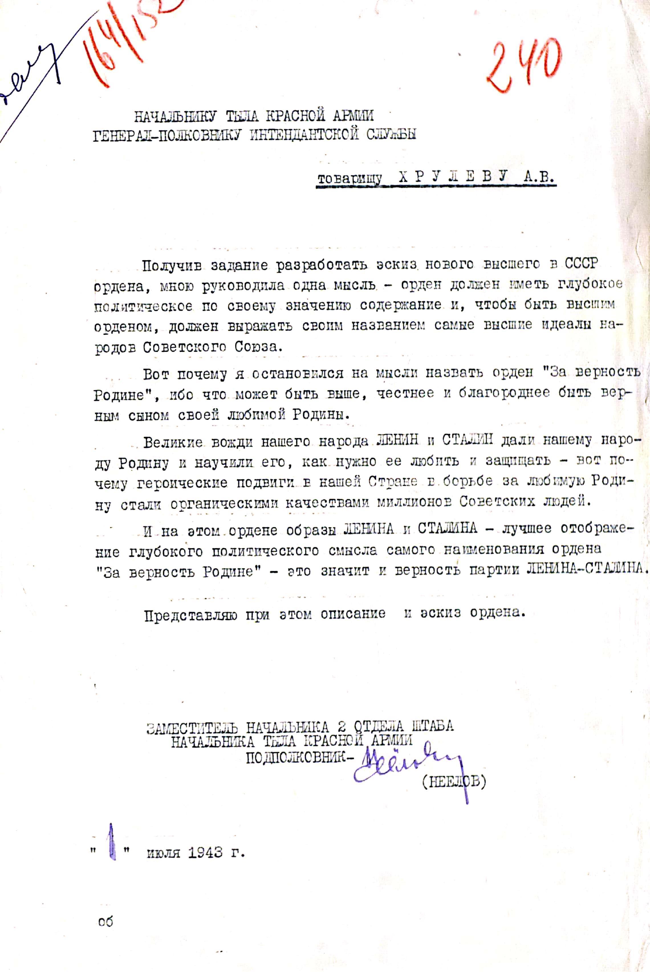 Не знаю, были ли таланты художника у подполковника Неелова, заместителя начальника отдела штабаНачальника Тыла КраснойАрмии, но, похоже, что первоначальная идея высшего ордена (без слова "полководческого"), принадлежала Николаю Сергеевичу. Удалось найти редкий документ, в котором создатель проекта ордена разъясняет свои мысли, идеи, которые он вкладывал в то, как должна выглядеть награда: