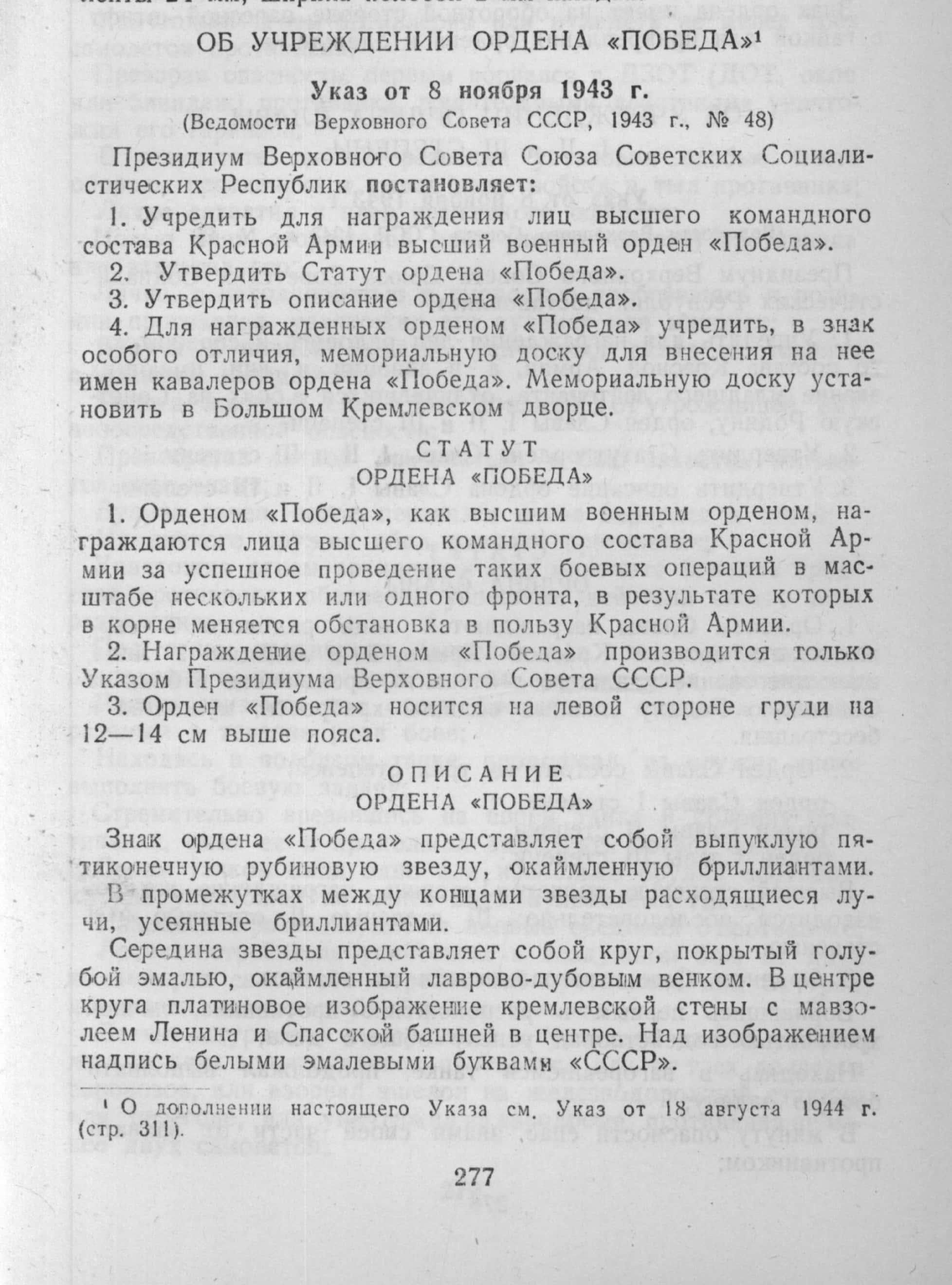 О высшем и полководческих орденах СССР. К 79-летию со дня учреждения ордена "Победа"