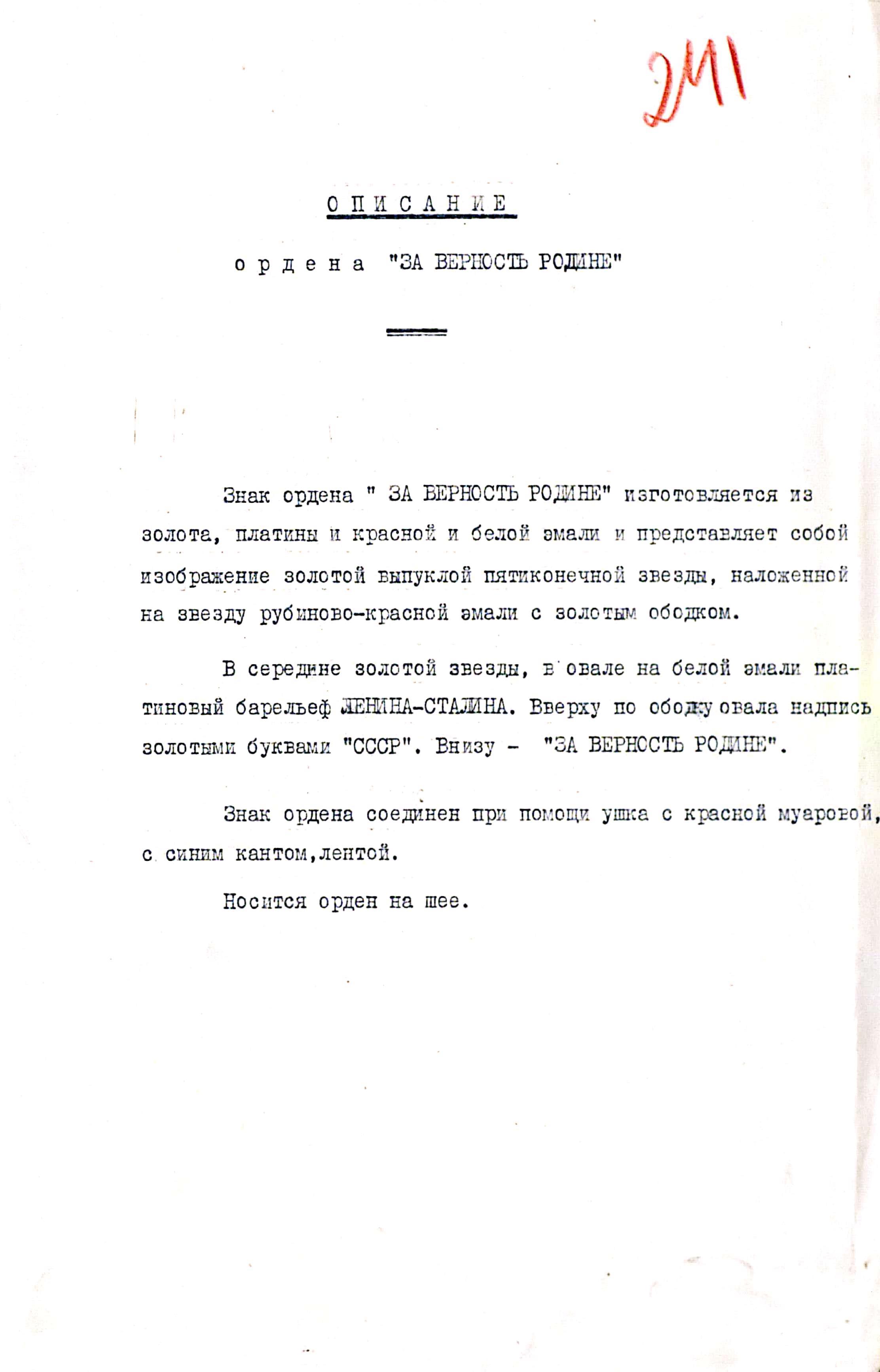 В подмосковном музее вещевой службы Вооруженных Сил, среди неутвержденных наград, выставлены два варианта высшего ордена: "За верность Родине" и "Победы".