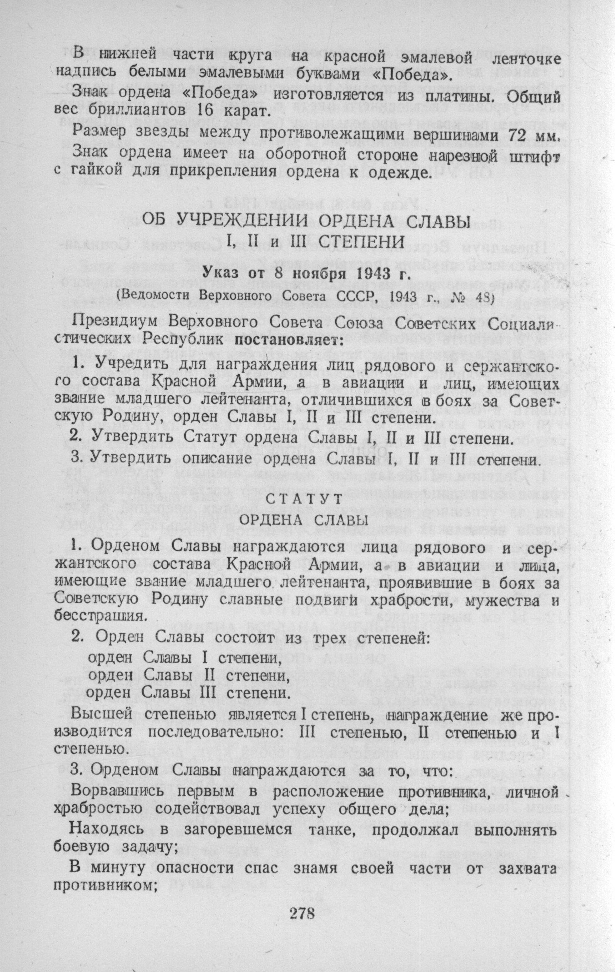 "79 лет тому назад в СССР был учреждён Орден Славы трёх степеней. Эта награда предназначалась исключительно для награждения рядового и сержантского состава и, наряду со Звездой Героя, стала вещественным символом воинской доблести. Одновременно с «солдатским» Орденом Славы был учреждён и «полководческий» орден «Победа».".