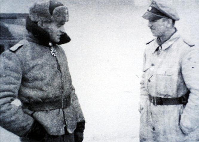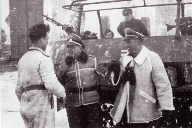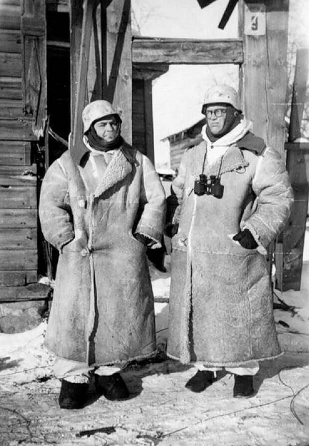 Гитлеровские офицеры в модных зимних вещах, скорее всего присланных из Германии
