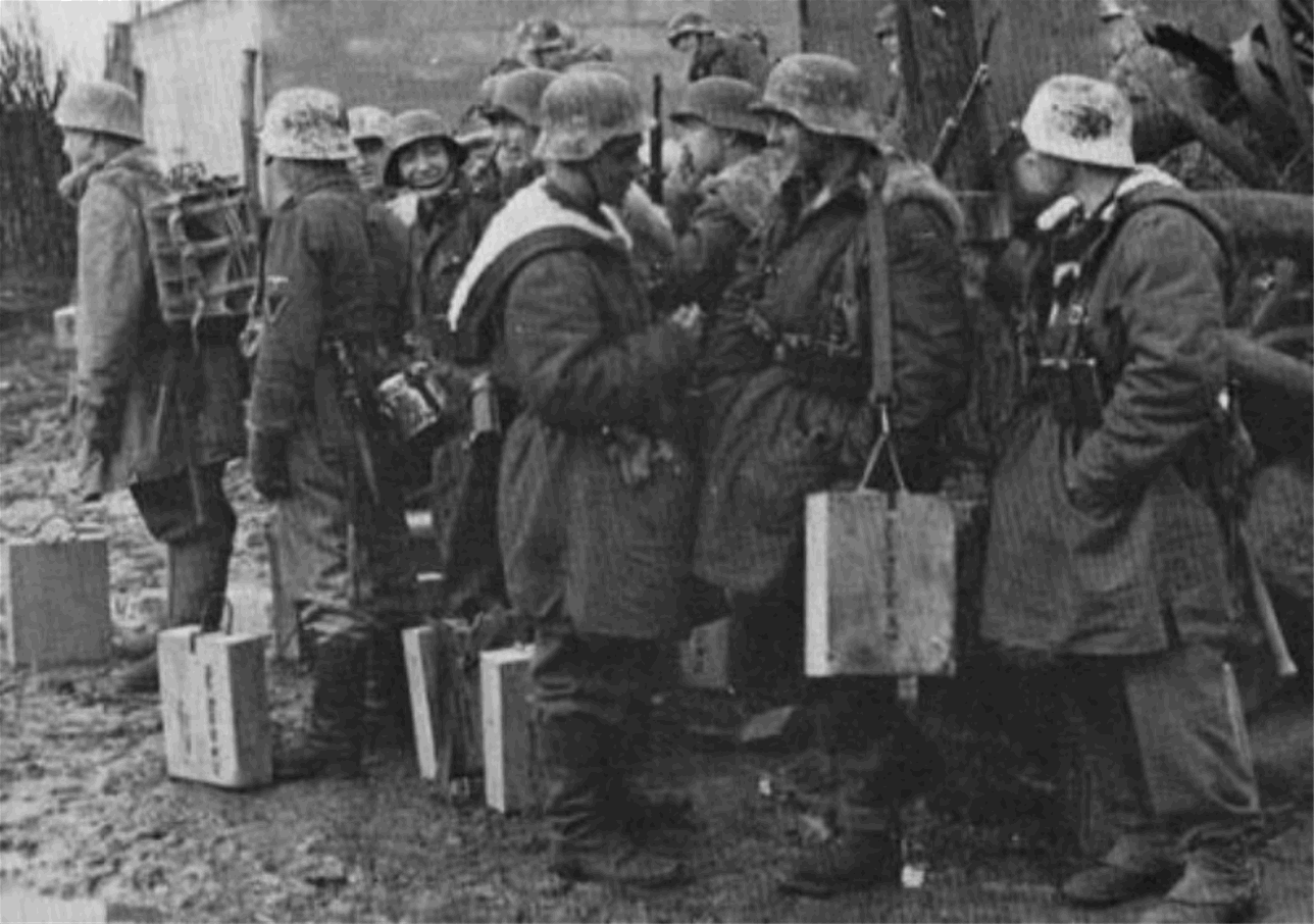 Полицейским частям «СС» выданы меховые куртки. меховые рукавицы, шерстяные одеяла, шерстяные перчатки и шлемы и теплые шаровары.