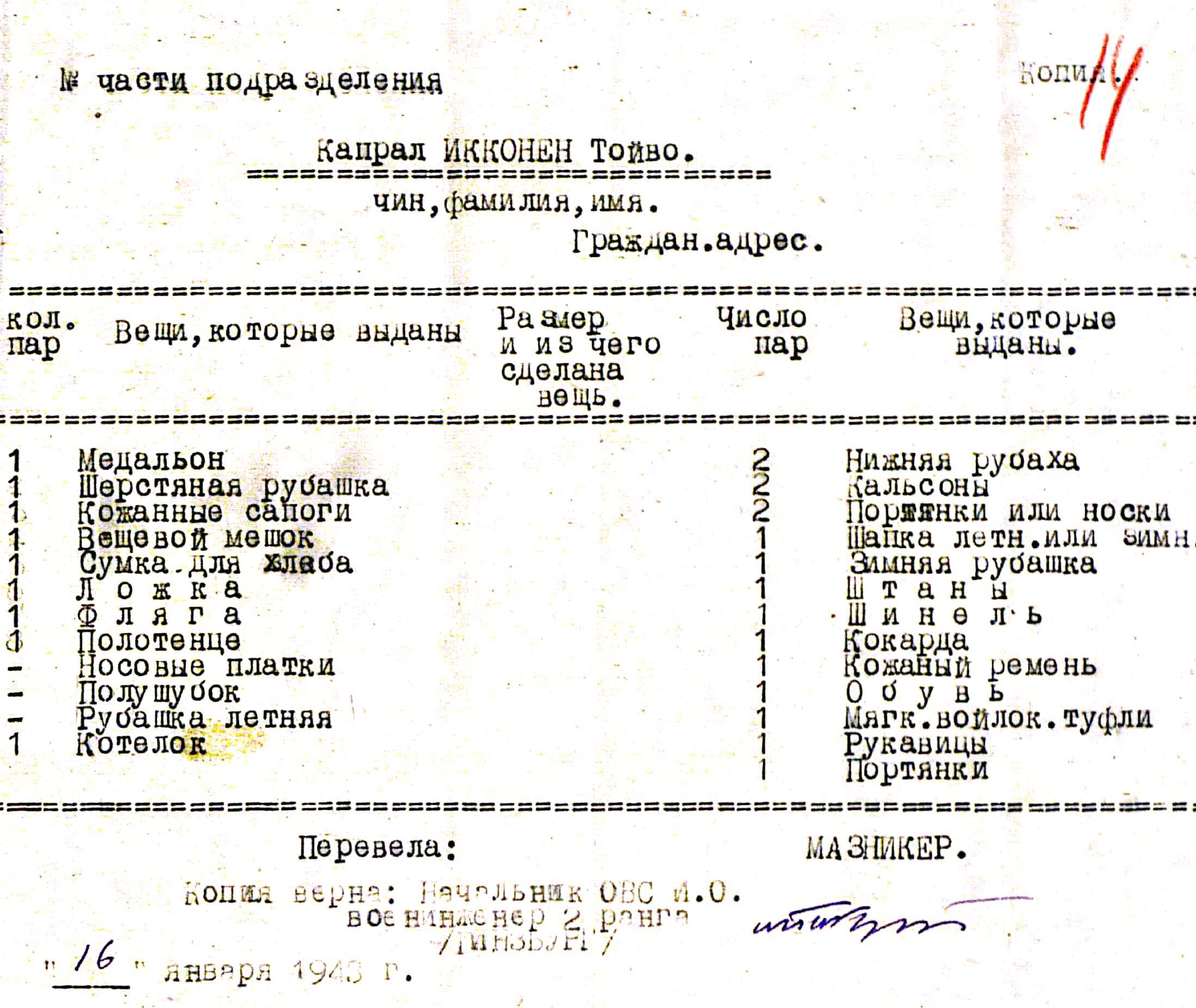 Обеспечение финских войск тёплыми вещами зимой 1942 - 1943 г.г.