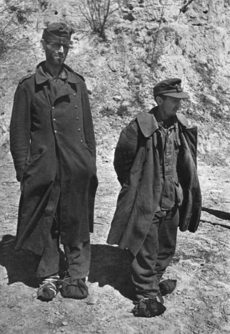 В некоторых дивизиях часть солдат одета в валенки русского производства и вместо костюма теплого двустороннего получила одеяла. Распространение получили меховые бурки на деревянной подошве.