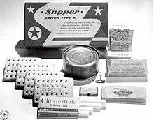 Сигареты и конфеты занимают важное место среди факторов морального духа, однако во время Первой мировой войны мужчинам приходилось покупать их в столовых, и они обходились без них, когда у них заканчивались деньги. Именно генерал-квартирмейстеру Э. Б. Грегори пришла в голову идея выдавать эти вещи солдатам на фронте. Сигареты и конфеты входят в каждый продовольственный рацион, а также в пакет с аксессуарами, содержащий ассортимент, достаточный для того, чтобы накормить двести человек в день.