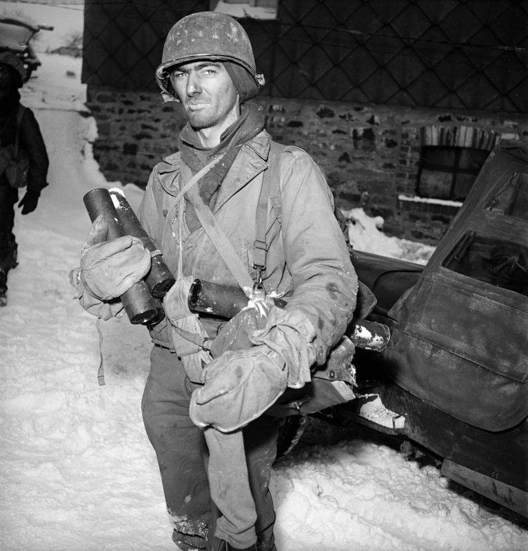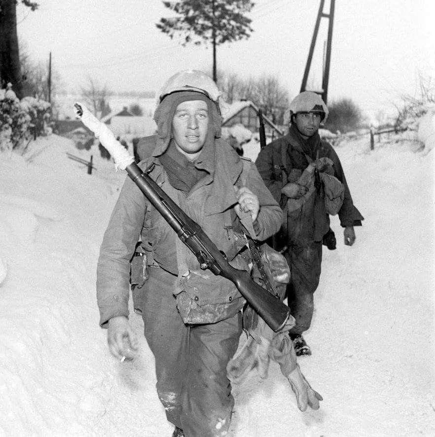 Похоже, речь в статье идет о куртке, которая надета на американского военного на фото слева. Под Арденами военные армии США были одеты достаточно разнообразно (правое фото)