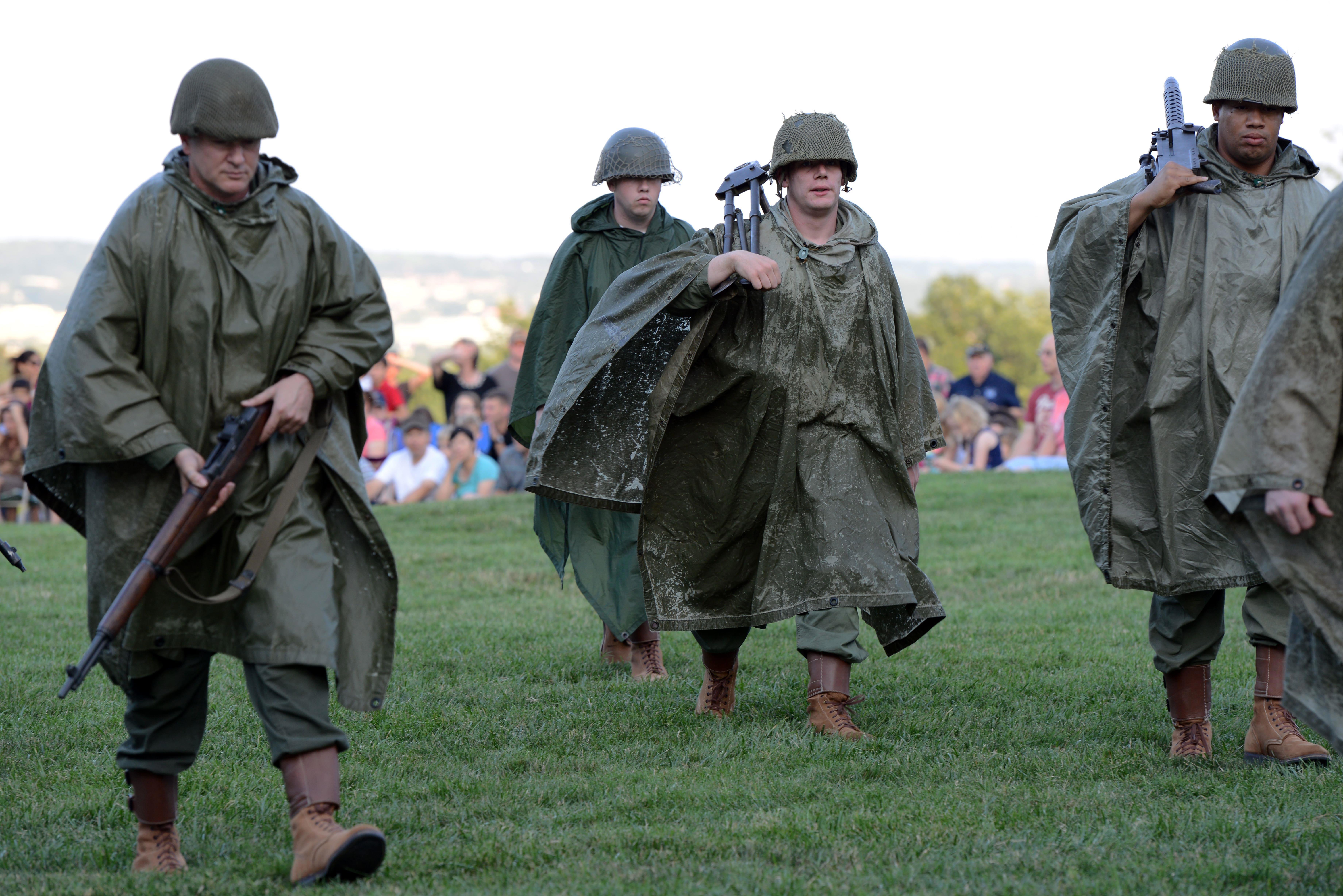 Солдаты армии США в палатках пончо (современная реконструкция)