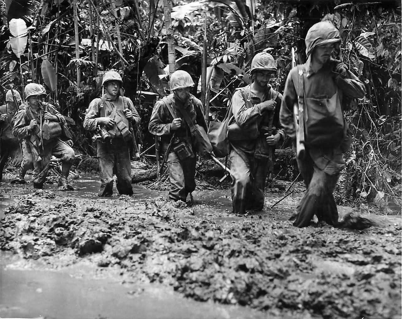 3 я дивизия морской пехоты продвигается по грязи по тропе Нума Нума Бугенвиль 1944 год