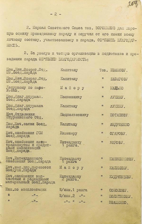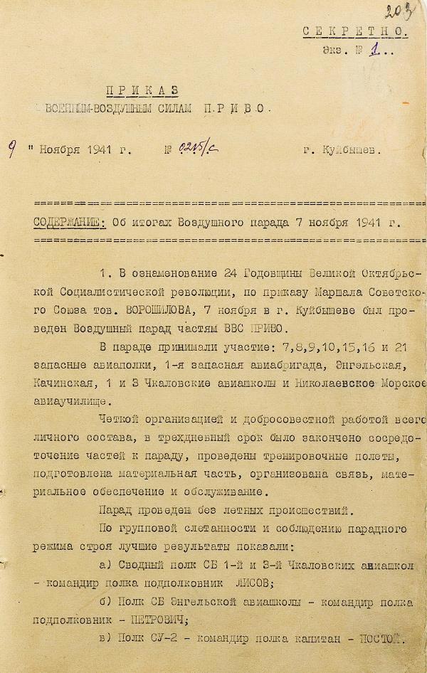 Приказ об итогах воздушного парада 7 ноября 1941 г.