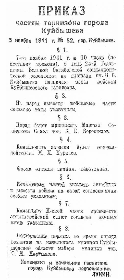 Небольшое дополнение к истории Парада 7 ноября 1941 г. в Куйбышеве.