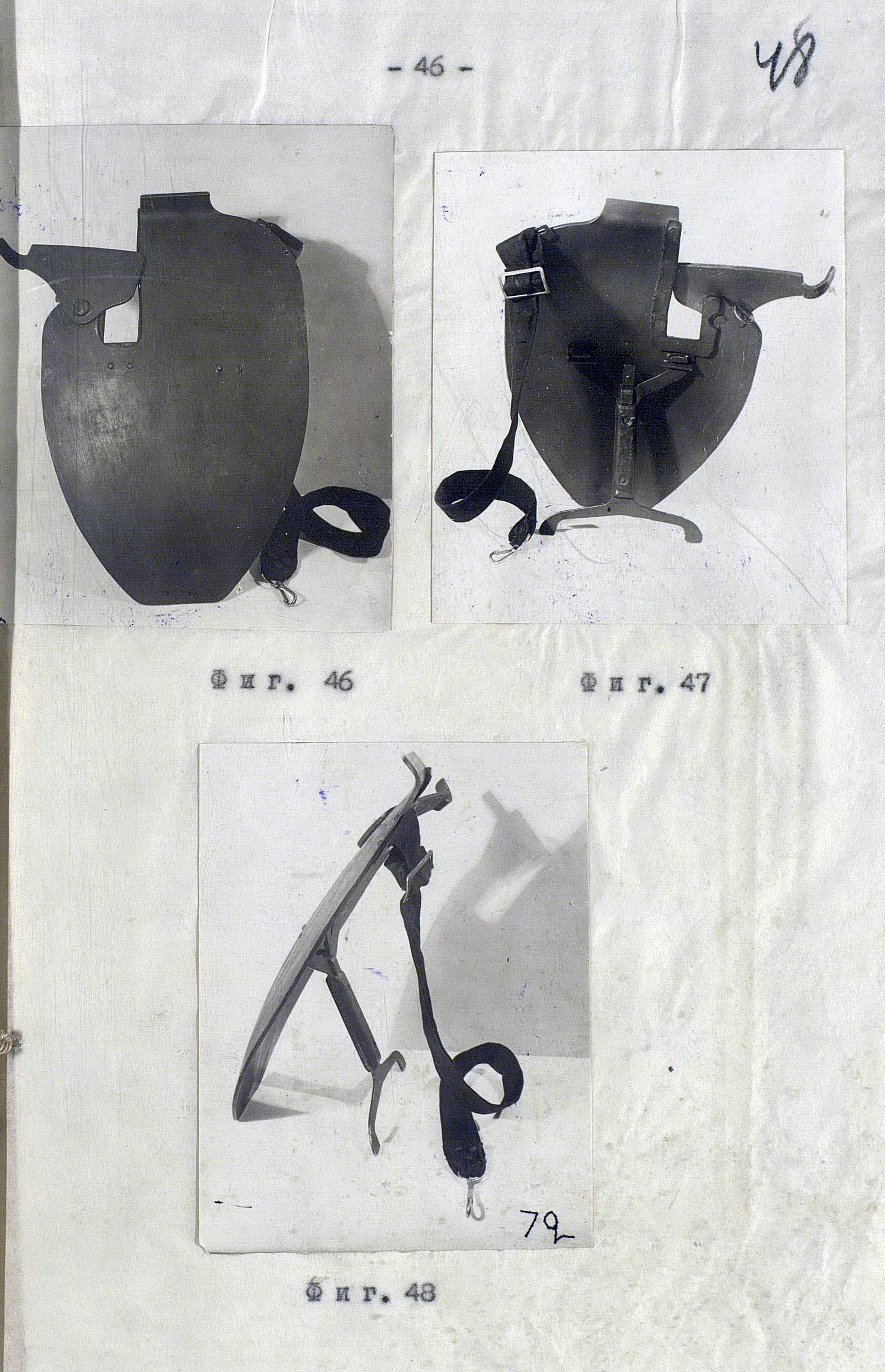 Упомянутые выше испытания опытной партии мыслились, как войсковые испытания и ставились главным образом с целью получения исчерпывающих данных по условиям носки, технике применения в условиях стрельбы в разных положениях, при переползаниях и т.д.