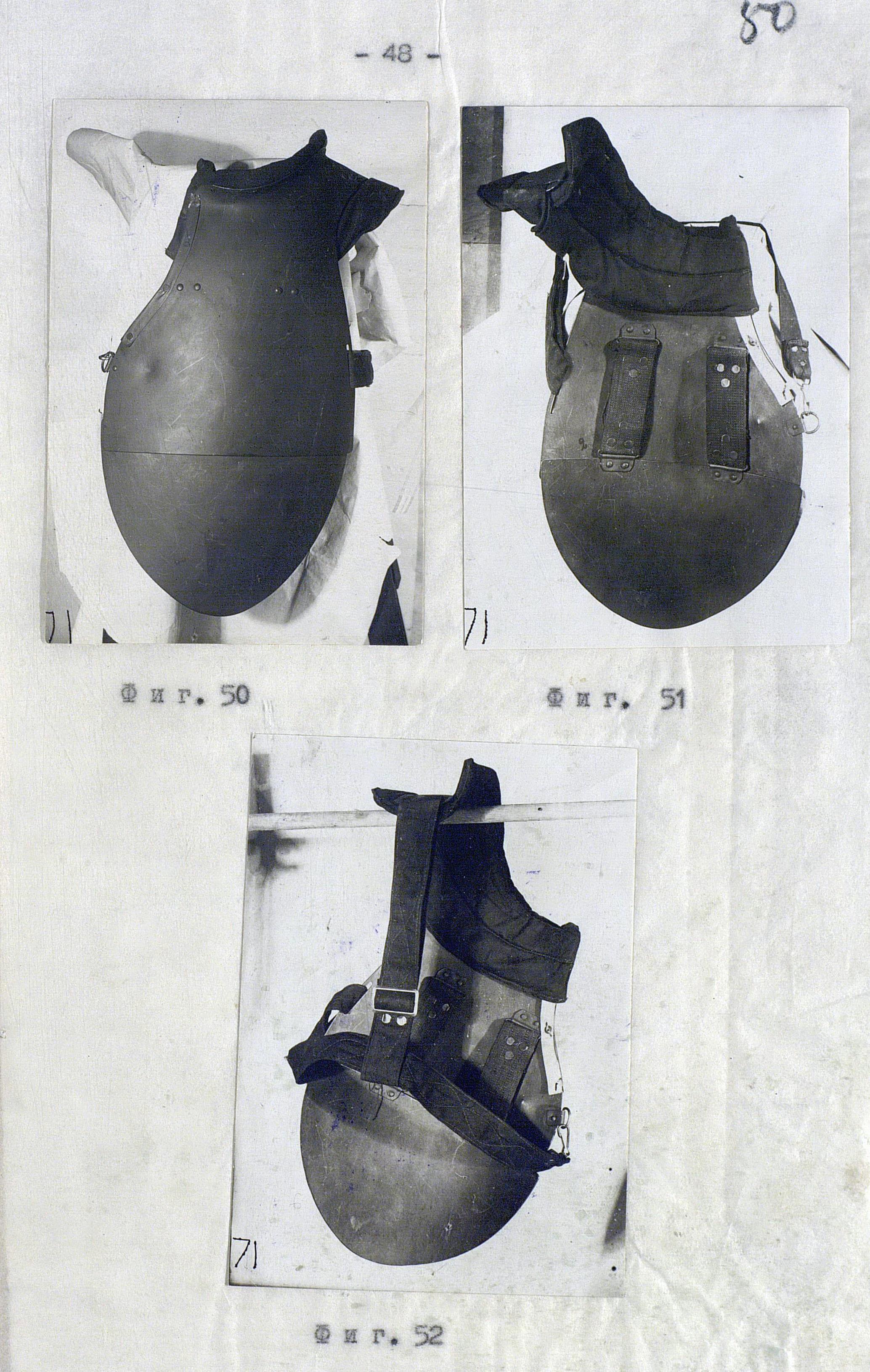 Если мы все же решили затронуть здесь эти исторические материалы, то лишь затем, чтобы исходя из резкого различия назначения панцирей и современных нагрудников показать нелогичность отдельных, даже и современных попыток разрабатывать нагрудник в плане простой преемственности и модернизации старинных образцов.
