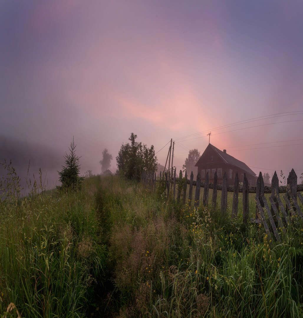 В сырой, белесой мгле дома, сливаясь, тонут,