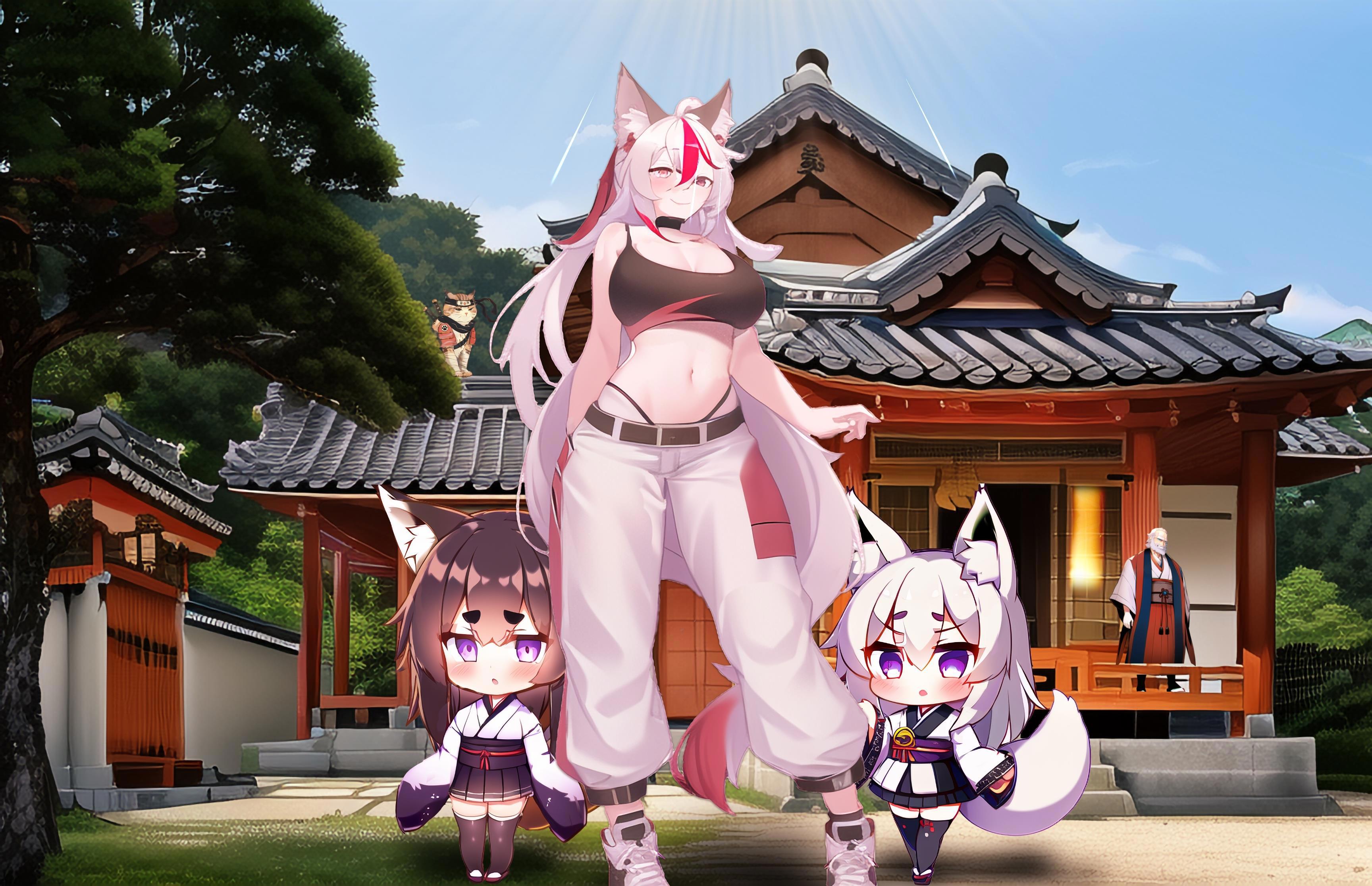 Кицунэ Алиса в поместье Фудзивара со спасенными лолисичками