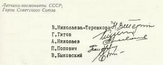 Если посмотреть на подписантов, то сразу бросается в глаза, что кого-то в списке не хватает. Да, первый космонавт планеты Земля подписывать отказался.
