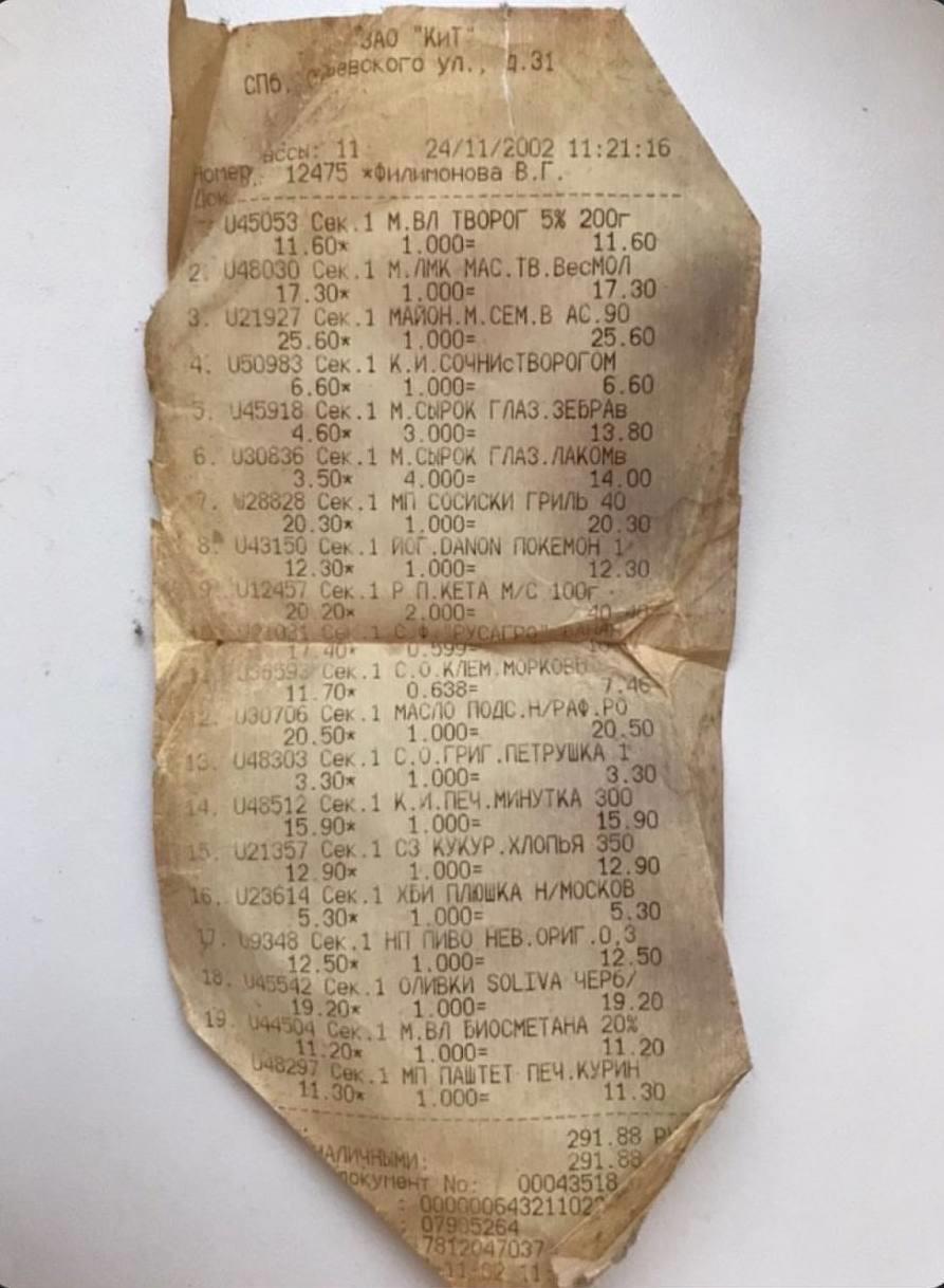 Чек 20-летней давности - что сколько тогда стоило в Петербурге.