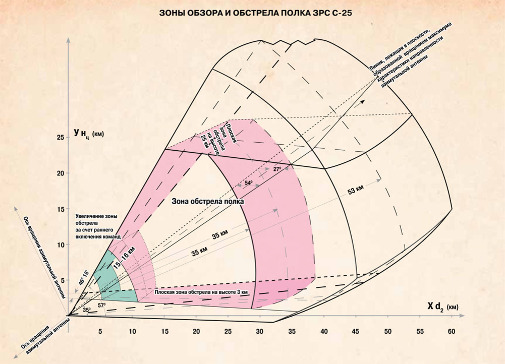 И в этом и крылся главный подвох “Беркута”. Обычный одноканальный зенитно-ракетный комплекс – MIM-3 “Nike-Ajax”, С-75 “Двина”, “Bristol Bloodhound” – мог спокойно поворачивать свои радары, и обстреливать цели в 360-градусной зоне вокруг себя. С-25 “Беркут” не мог. При строительстве он был жестко ориентирован в определенном направлении, и за пределами этого 50-60 градусного сектора он не видел ничего, и сделать ничего не мог. Повернуть комплекс на летящий сбоку от сектора обзора самолет было невозможно.