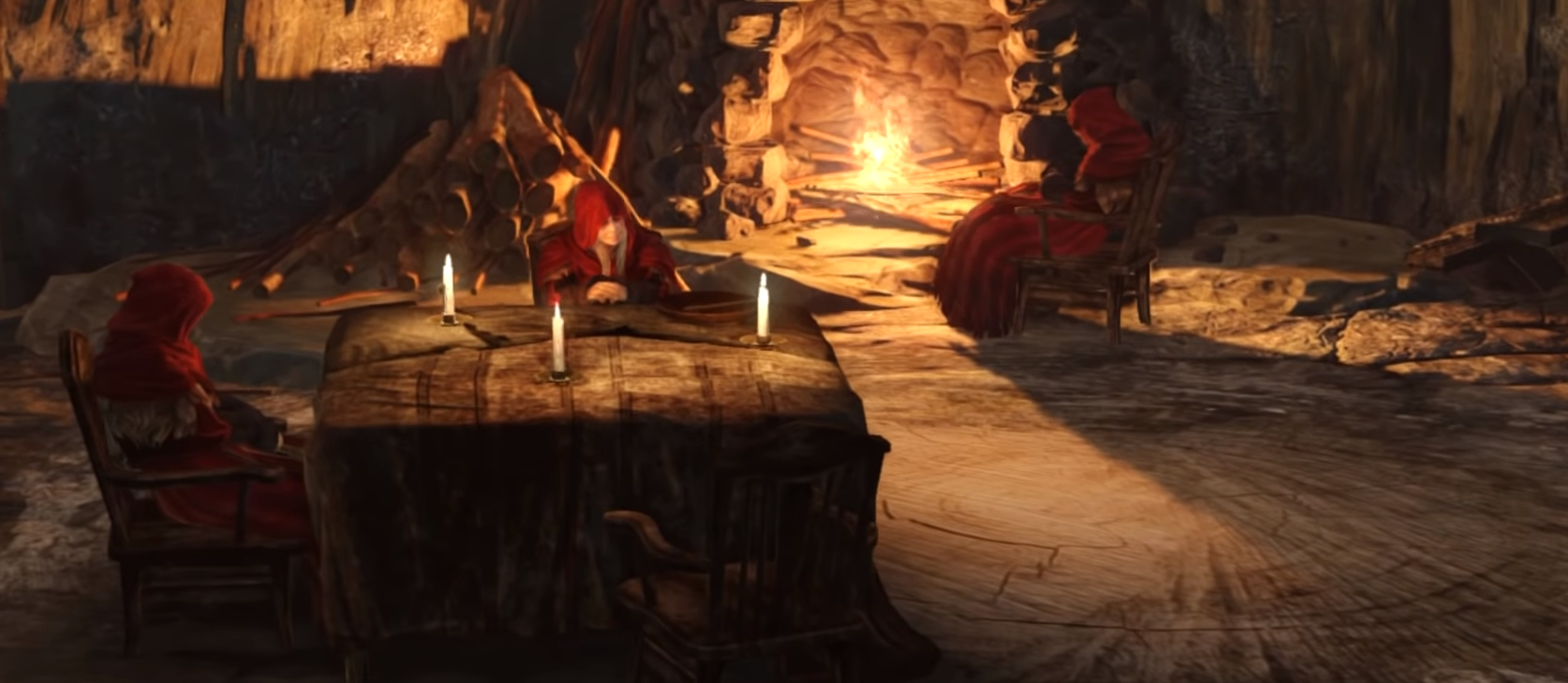 Думаю, все поклонники игровой серии «Souls» узнали почтенных старушек. А для меня эта катсцена – не просто старт второй части «Душ», но и своего рода отправная точка развития сюжета «Цифромагии». Глядя на диалог ведьм с моим игровым персонажем (да-да, я помню, что говорили только ведьмы), я подумал: почему бы не создать книжного героя, вынужденного работать на обладателей магического дара – путешествовать по другим мирам, сражаться с чудовищами, похищать артефакты и так далее?.. Единственное, сразу три ведьмы мне показались перебором, одной хватило бы вполне, тем более что для нее у меня давно имелся прототип из реальной жизни. Как раз-таки с протезом и двор-терьером.