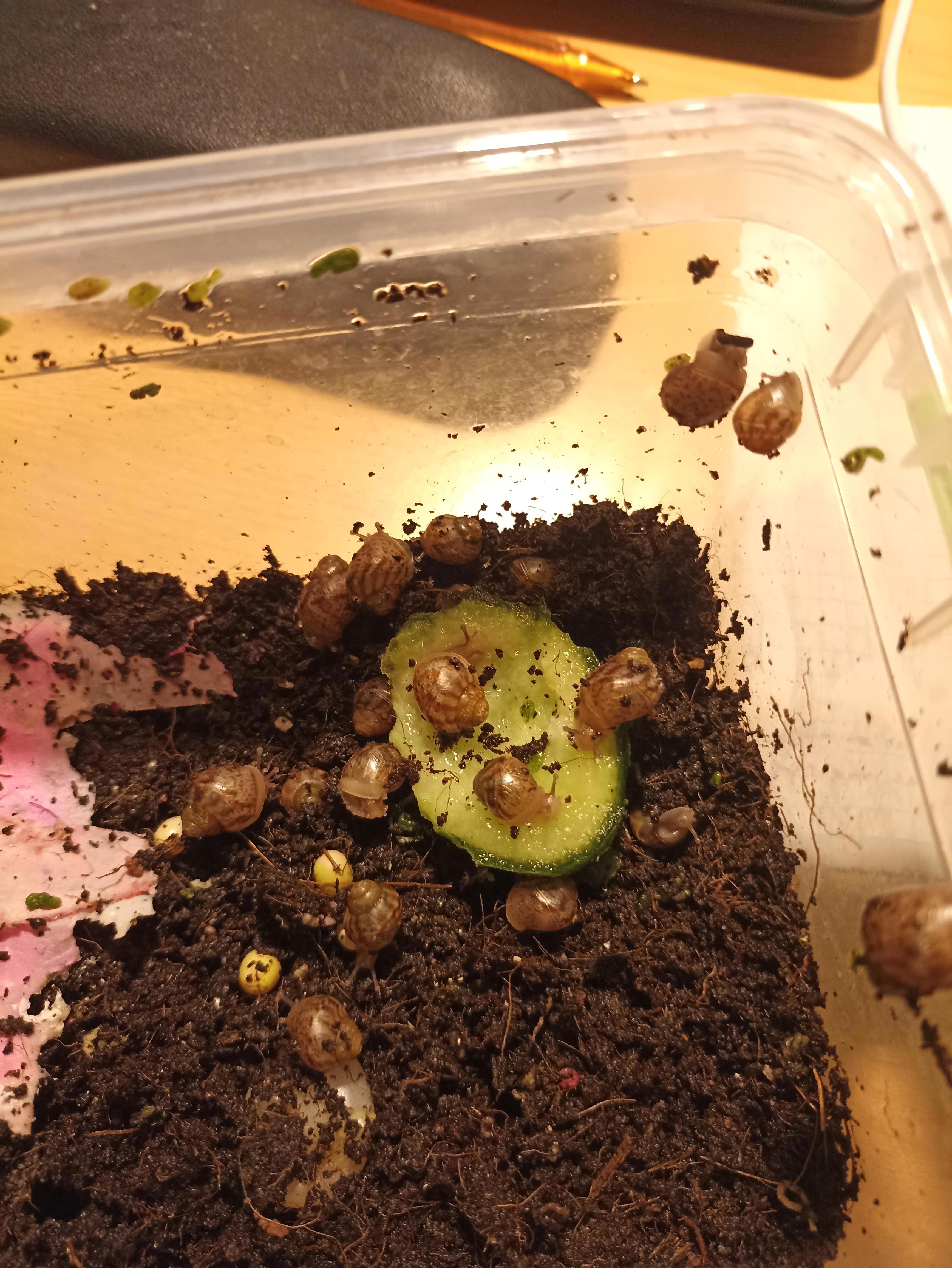 Кто не знает: я владелица 10 взрослых гигантских улиток и примерно 20 мелких детёнышей, с помощью которых я планирую уничтожить поверхность территории восточной Европы.