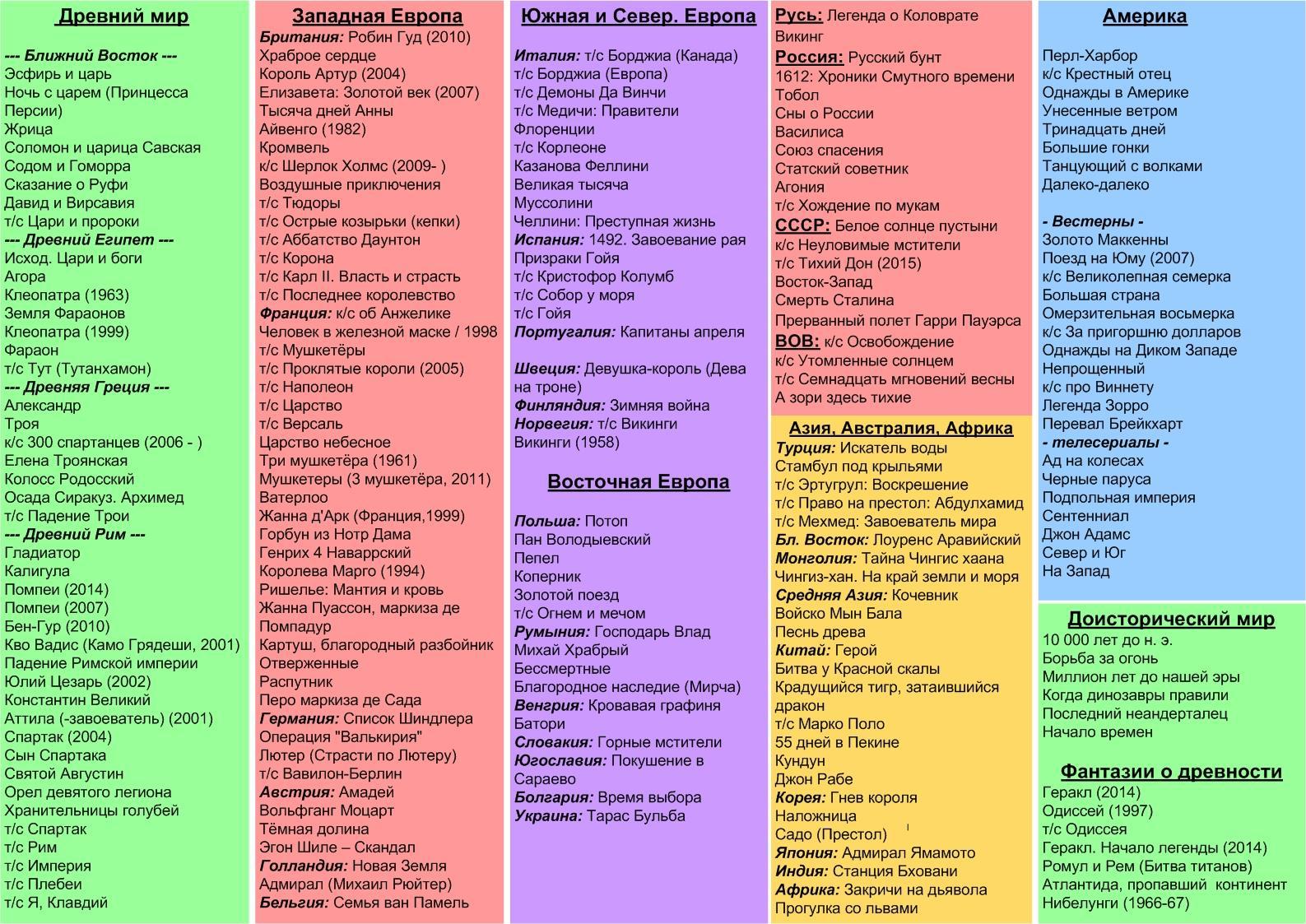 Лучшие истор. фильмы на одном листе