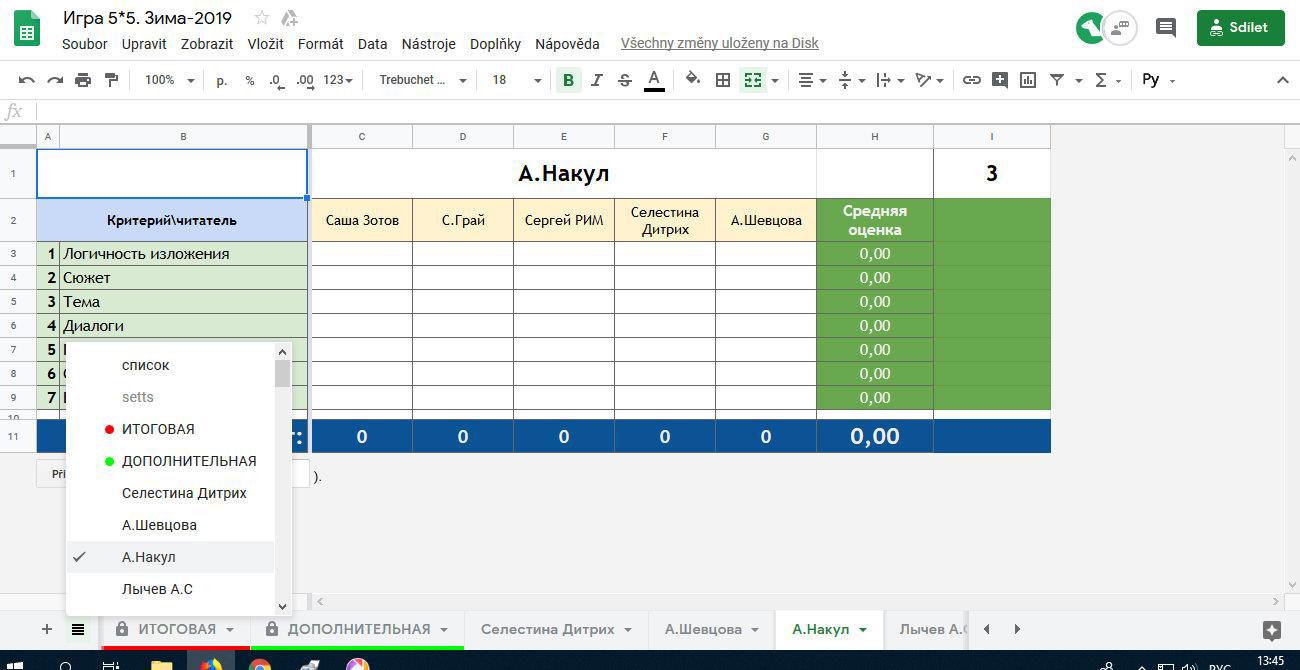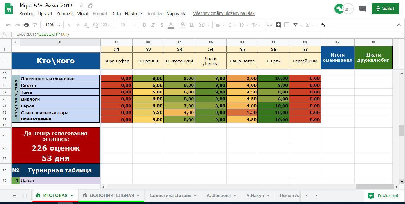 Еще у нас есть ДОПОЛНИТЕЛЬНАЯ таблица для результатов «внеклассного чтения». Если кому захочется прочитать и оценить кого-то вне игрового плана - баллы будут вноситься сюда.
