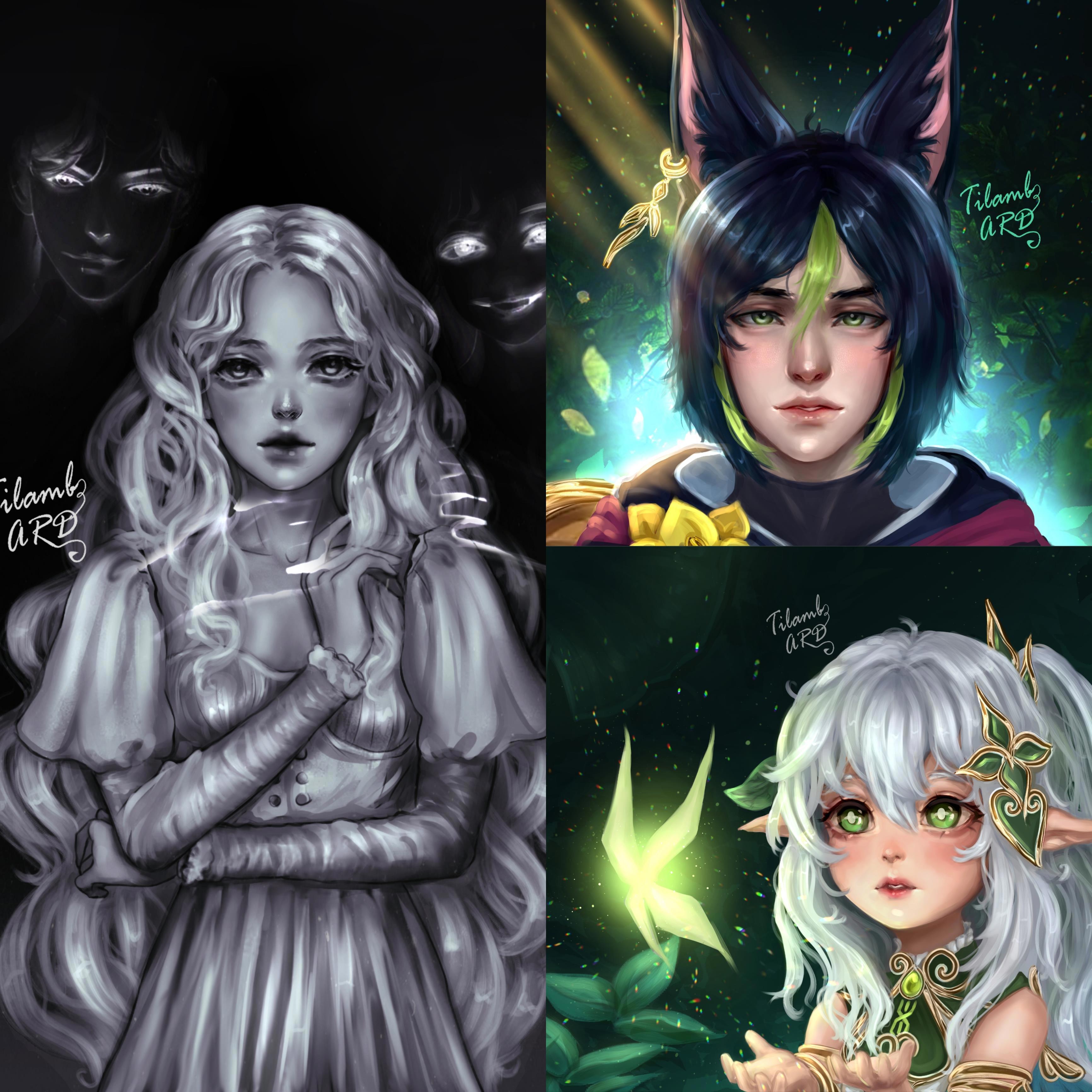 Что я хочу сказать, перед таким "уходом" возьму пару заказиков на портрет по плечи. В коллаже по левую сторону мой оригинальный персонаж из комикса. По правую примеры портретов. За портрет выйдет около 3500₽, но лучше напишите в лс, обсудим более детально (цены могут отличаться!)