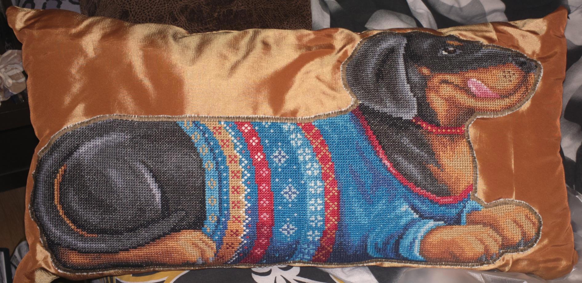 А это из свеженького, 2017. Нашивала на подушку мама, Кисе шитье не дается...