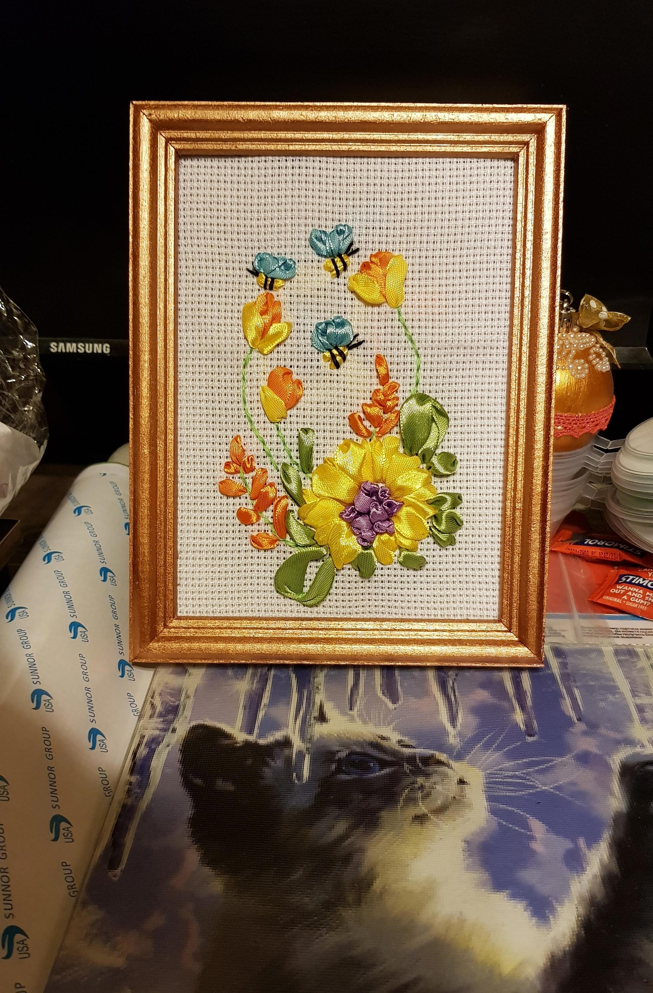 П.С. а это - пока единственная вышивка лентами. Кисе понравилось, но до большой картины руки пока не дошли...