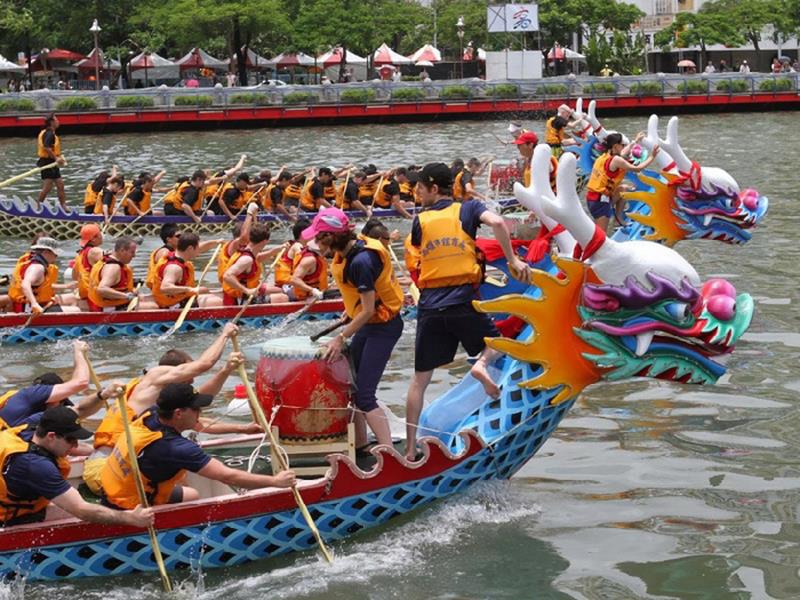 Праздник драконьих лодок известен не только своими лакомствами, но и традиционными соревнованиями по гребле на лодках. Это яркое, развлекательное, веселое и шумное событие. На берегу реки собирается множество людей, чтобы посмотреть не только увлекательные соревнования, но и полюбоваться красотой лодок.