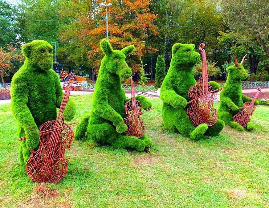 Всё это предназначено для украшения садов, скверов и парков. И если подходить к делу с любовью и фантазией, топиари становятся заметным элементом ландшафтного декора и дизайна, привлекая внимание детей и взрослых.