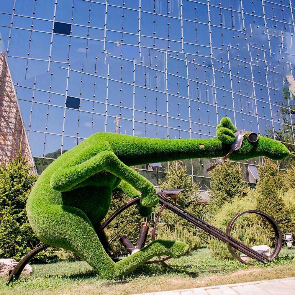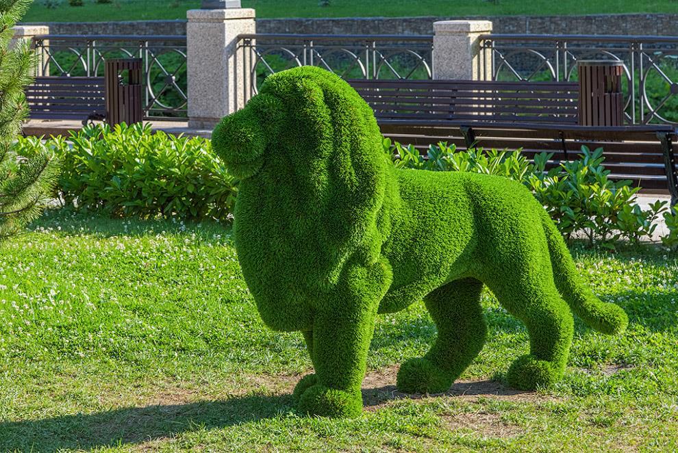 Однако, прогресс не стоит на месте! Современные трёхмерные реалистичные топиарные фигуры научились изготавливать из искусственных материалов (как правило скелет из прочной стеклопластиковой арматуры покрытый высококачественным искусственным газоном). Такие поделки устойчивых к атмосферным воздействиям, не требуют ухода удобрения, полива и регулярной стрижки, не боятся осадков, привлекательны, безопасны (поскольку достаточно прочные, устойчивые и легкие) и долговечные (не подвержены гниению и не поддаются коррозии).