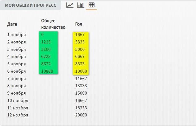 Недельный прогресс даю на картинке. Зелёненький столбец - что получилось, жёлтенький - цифры, которые требует марафон ежедневно, чтобы авторы уложились в 50 000 слов за один месяц.