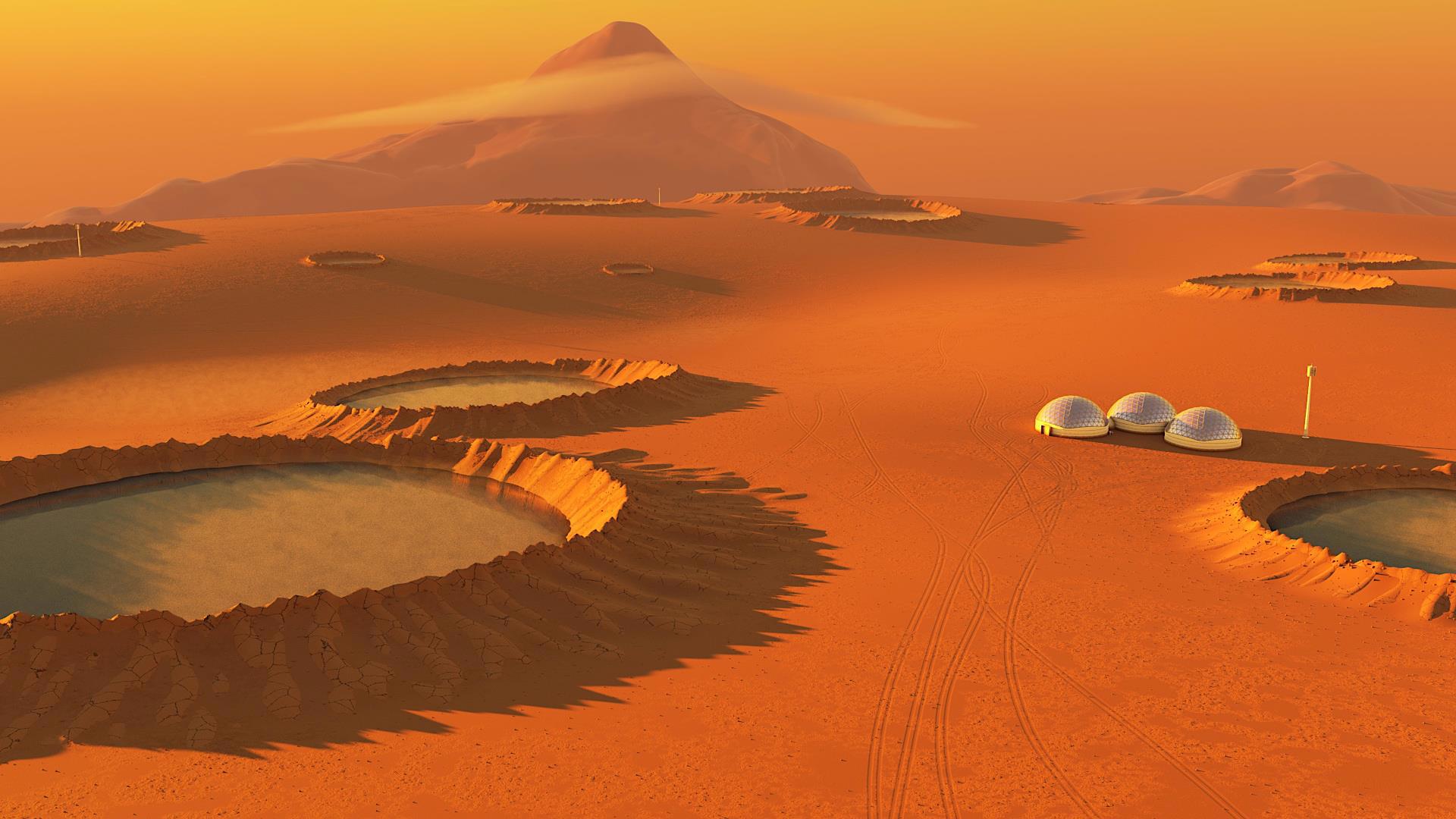Вода в кратерах потому как подразумевается, что поселенцы уже устроили там дожди и немного уплотнили атмосферу (я про это упоминал несколько блогов назад, когда рассказывал про винлунги), но дышать атм всё ещё не очень, потому большинство сидит в купольных городах.