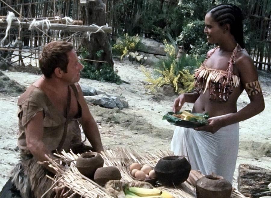 Но к счастью для Роберто на острове есть дикари! Точнее один из дикарей – очаровательная Пятница. Пятница, хотя и девушка, знает все: и как развести огонь, и как сломать кокос, и, о ужас! – как пользоваться бумерангом. За Роберто, как и в том мире из которого он прибыл, так и здесь, остаются только функции «формального мужика». Но и с этим проблемы. Пятница объясняет белому человеку, что пока не пройдут две луны, прикасаться к ней мужчина не имеет права, поскольку за всем этим наблюдает бог Мумба-Юмба. Легкомысленный Роберто подходит к идолу Мумбы-Юмбы и бросает ему вызов с оскорблениями, а затем пытается взять Пятницу силой. В ответ начинается ураган и землетрясение. Пятница успокаивает своими молитвами гневное божество, а Роберто после этого вздрагивает от одного намека на Мумба-Юмбу, и с тихой грустью в сердце беспомощно наблюдает обнаженные купания великолепной Пятницы. Если Мумба-Юмба сказал «две луны», то стало быть «две луны» и не хрен спорить!