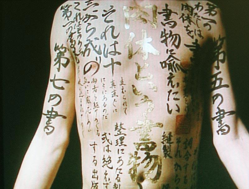 - Иероглифы на теле, которые рисуют персонажи фильма. Письмена на коже.