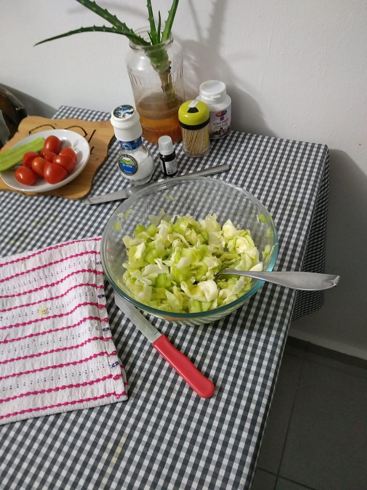 – Здесь главное – мелко нарезать и помять, – сказал он. – Капуста отдаст сок и станет мягче. Огурцы придадут салату свежий оттенок.