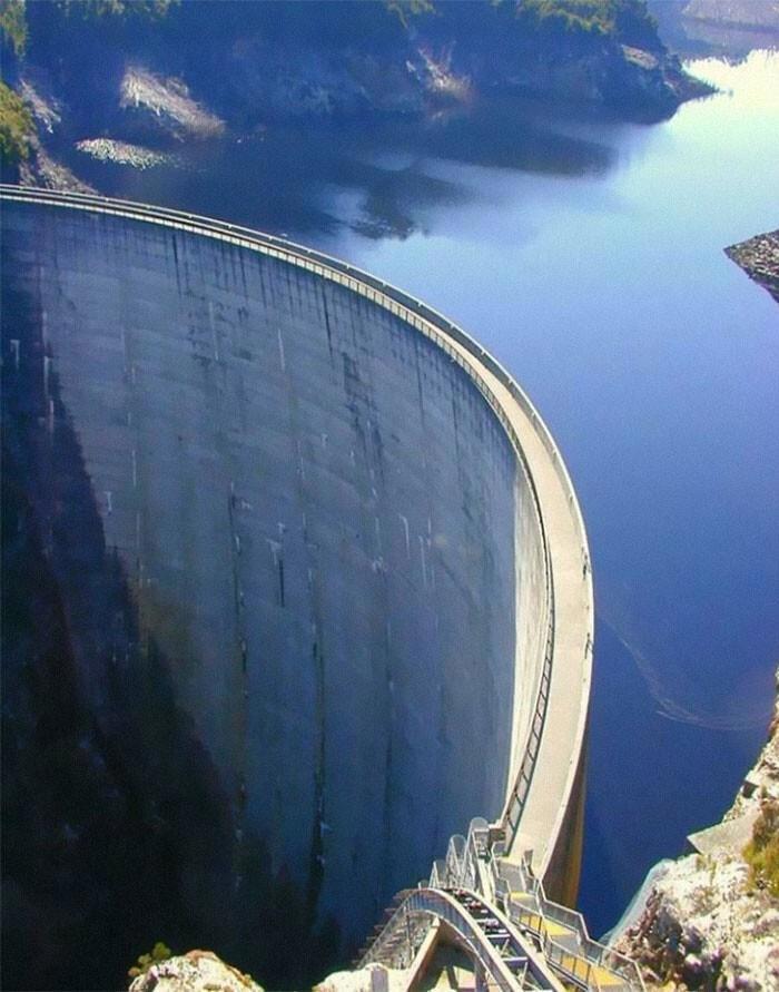 Дамба Гувера. Река Колорадо. Уникальное гидротехническое сооружение, бетонная арочно-гравитационная плотина высотой 221 м. Аризона.