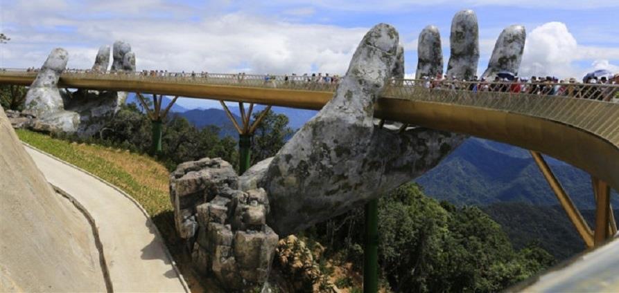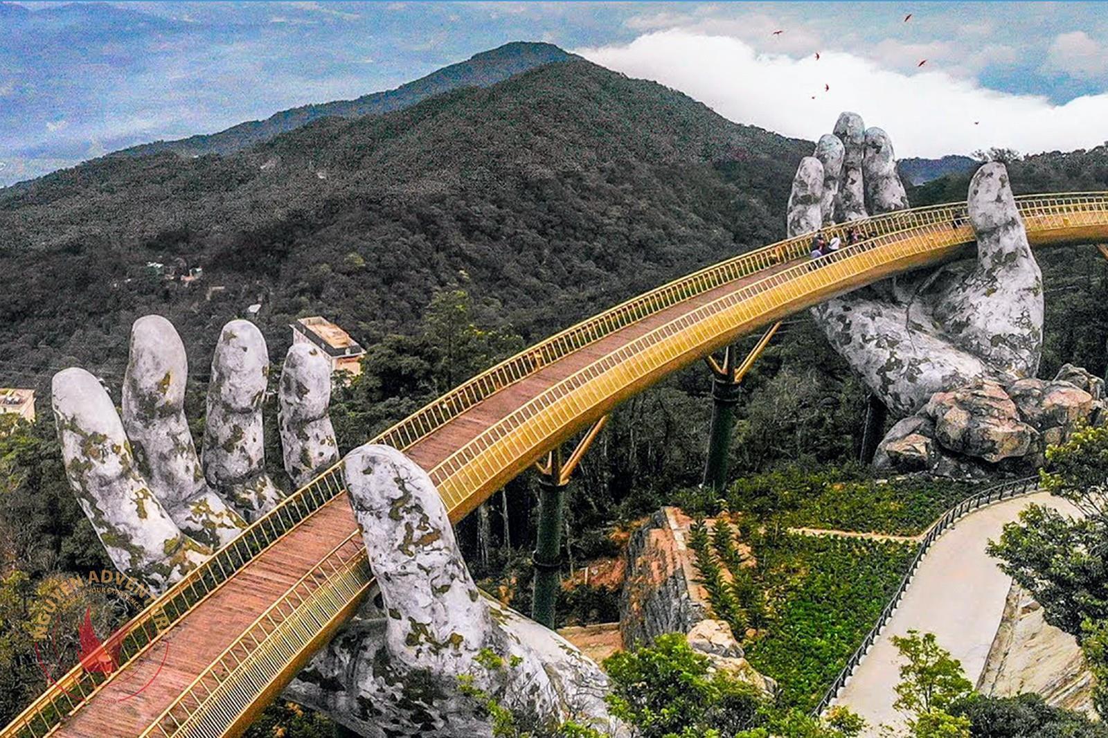 Золотой мост. 150 метровы пешеходный мост во Вьетнаме.