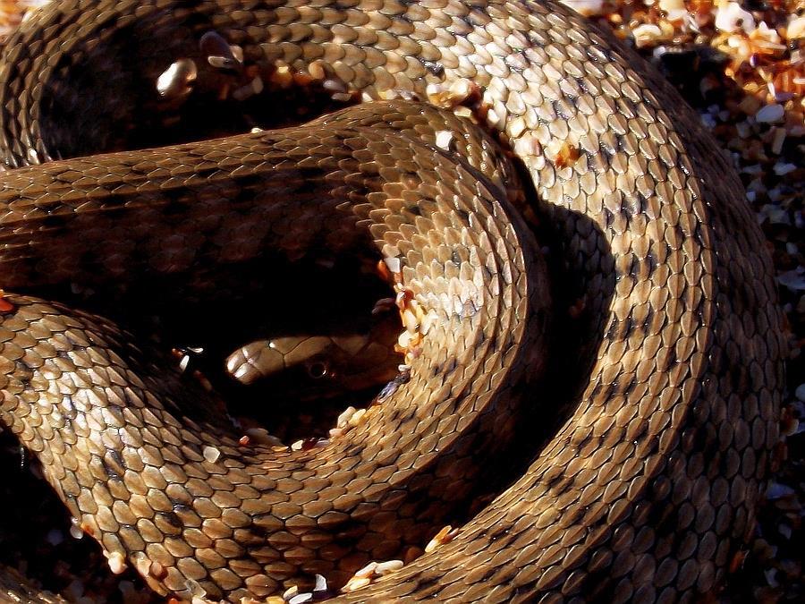 Автор: Елена ЧеркиаЯ там добавила главу в роман "Татуиро", но дата обновления не изменилась, по-прежнему 8 ноября. Хочу напомнить, что роман написан, и вторая книга цикла написана, а также два тома последней, третьей книги "Татуиро" написаны, так что никаких незавершённостей не будет. Возможно найду и опубликую некоторые замечательные рецензии на книги "Татуиро", написанные в разное время замечательными вдумчивыми читателями. И конечно, покажу тех змейчиков, которые позволяли себя снимать. В основном это ужи, их у нас много, в некоторые сезоны - очень много. Я к ним отношусь хорошо, надеюсь, они ко мне тоже))) Во всяком случае ни плавать, ни греться на солнышке, ни поедать пойманную добычу я моделям не мешала, а тех, кто позировал в руках, отпускала обратно. Это пара снимков водяного ужика с замечательно красивой рельефной шкуркой, который трогательно прятался от меня в собственных кольцах. Дело было на пляже, на крупном красивом песке. Картинка из этого сета пригодилась для создания обложки первой книги.