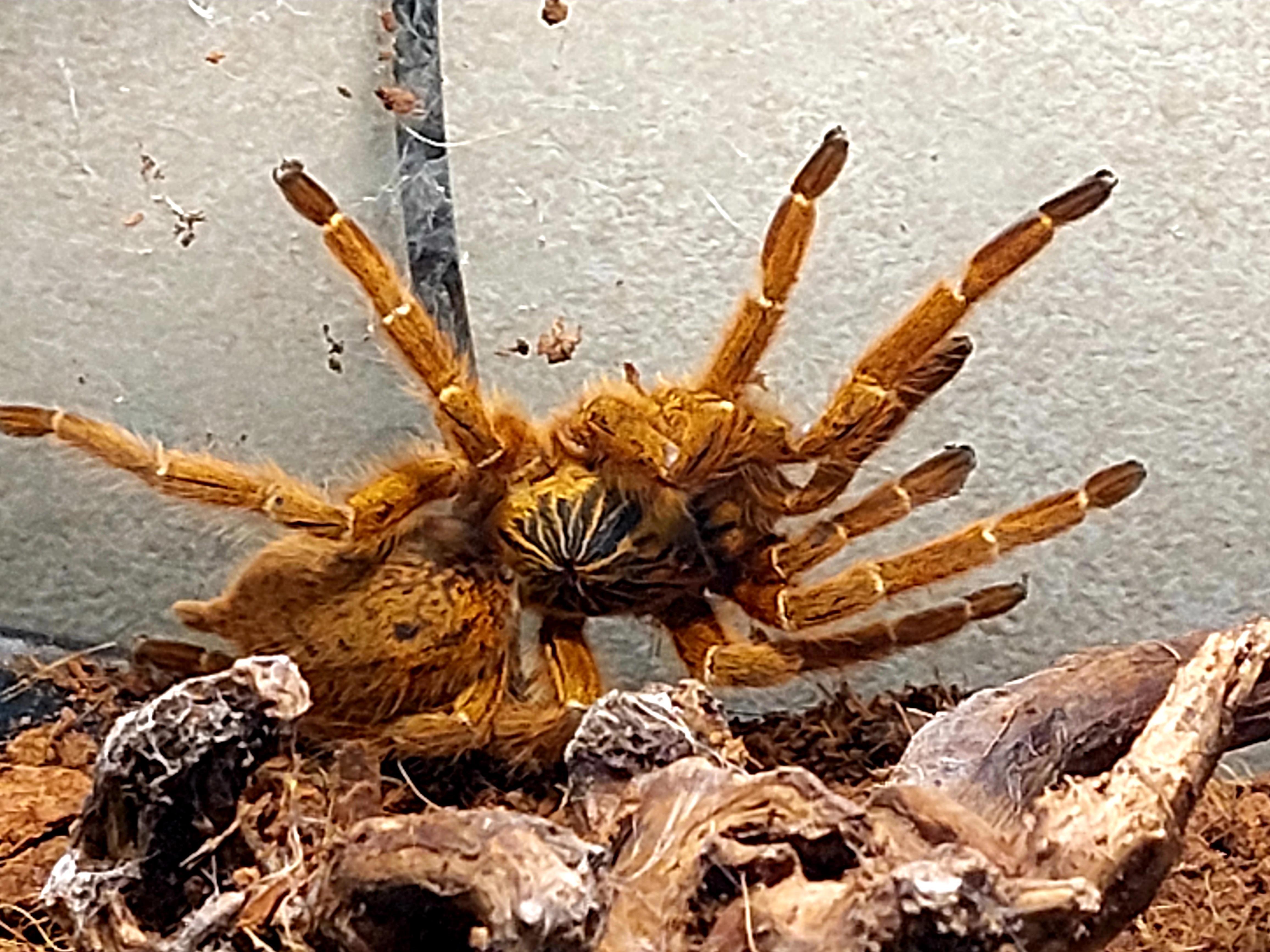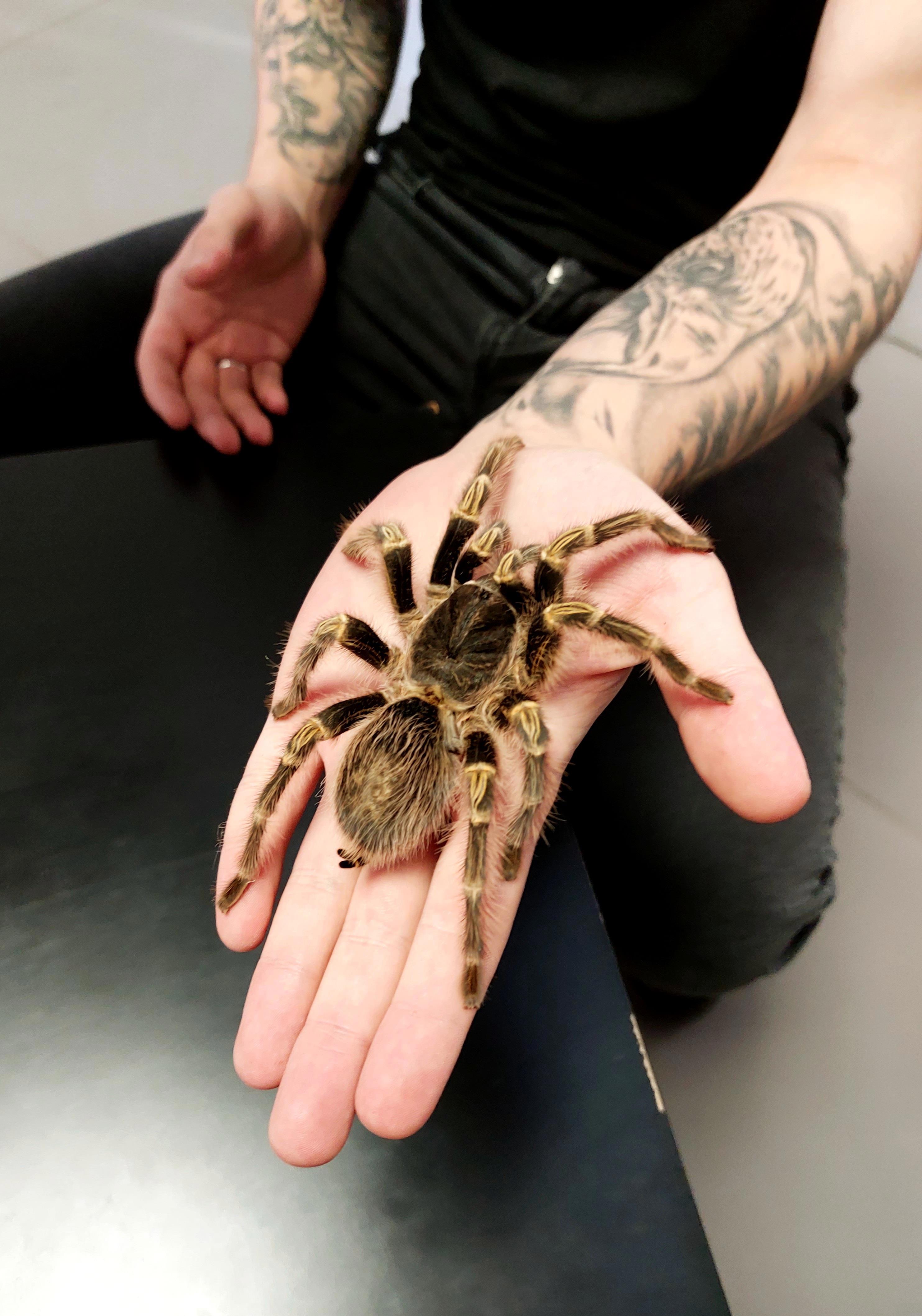 для нас специально вытащили самого большого и мохнатого птицееда и он довольно шустро поползал по руке смотрителя этого зоопарка... Специалист-арахнолог рассказал нам, что все особи на выставке - самочки, потому что паучьи дамы, оказывается, гораздо крупнее самцов и живут дольше... думаю, что они + ко всему ещё и более миловидны и общительны...
