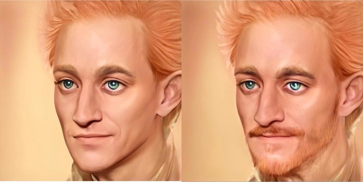 Покойничек вроде даже поживее стал, это меня даже обрадовала. Я подумала-подумала и запихнула картинку в нейросеть Wombo. Если заплатить немного денег, то Wombo дает доступ к нескольким интересным и качественным инструментам. Один из них очень неплохо обрабатывает лица. И вот что он мне нарисовал.