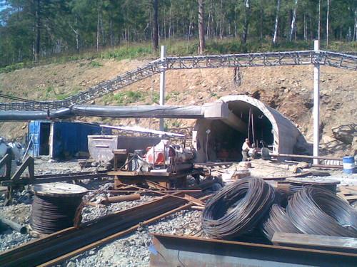 Тот самый наклонный ствол, где я работал: ш. "Ерунаковская-2-я" под Новокузнецком. Видно бетонированное устье и хаос на промплощадке :)
