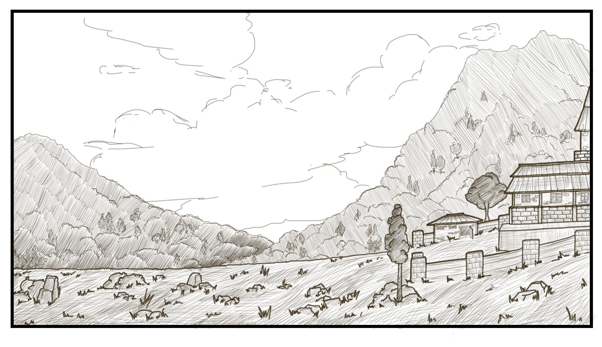 Новый пейзаж. Попробовала поработать с размером кисти и штриховкой. На мой взгляд получилось гораздо лучше, чем в прошлый раз)))