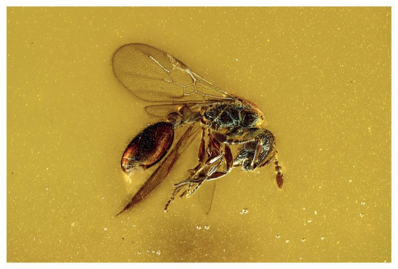 Крылатый муравей, заключенный в доминиканский янтарь возрастом около 20 миллионов лет.